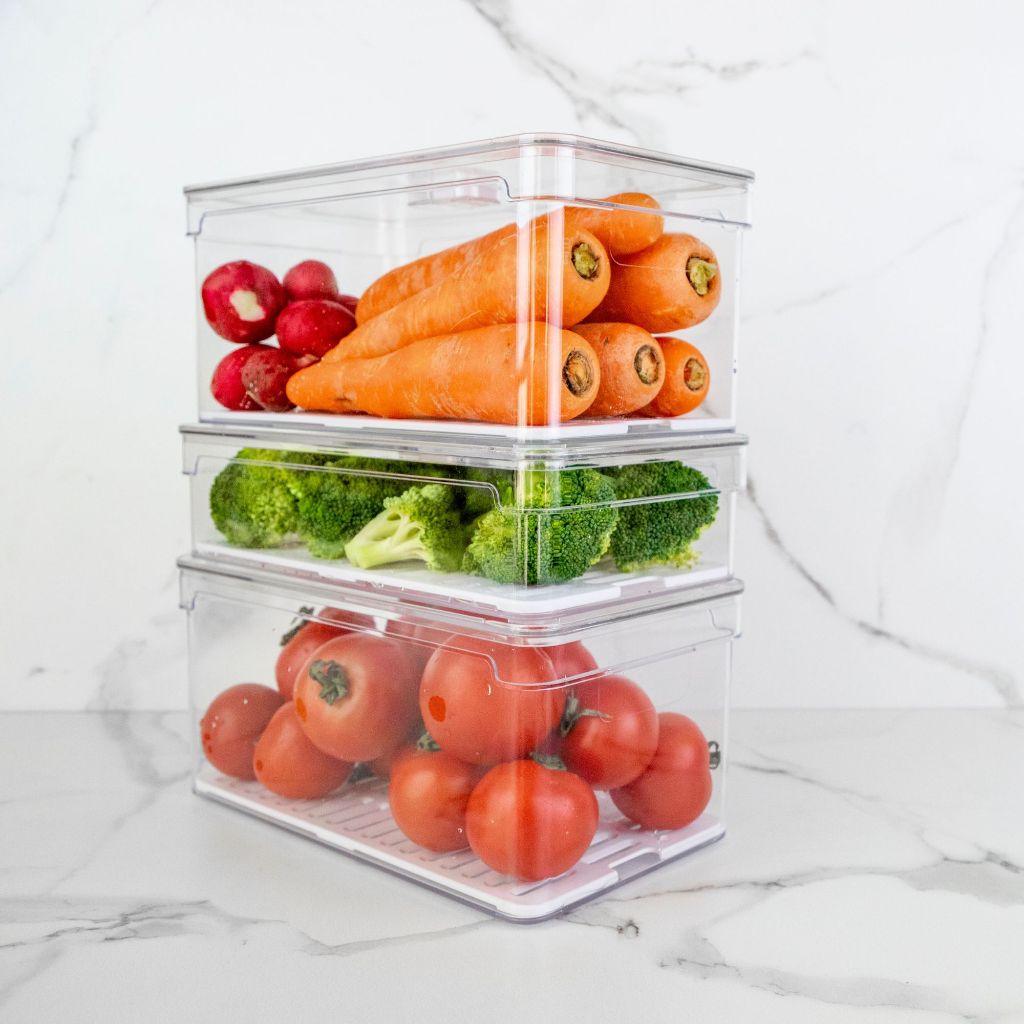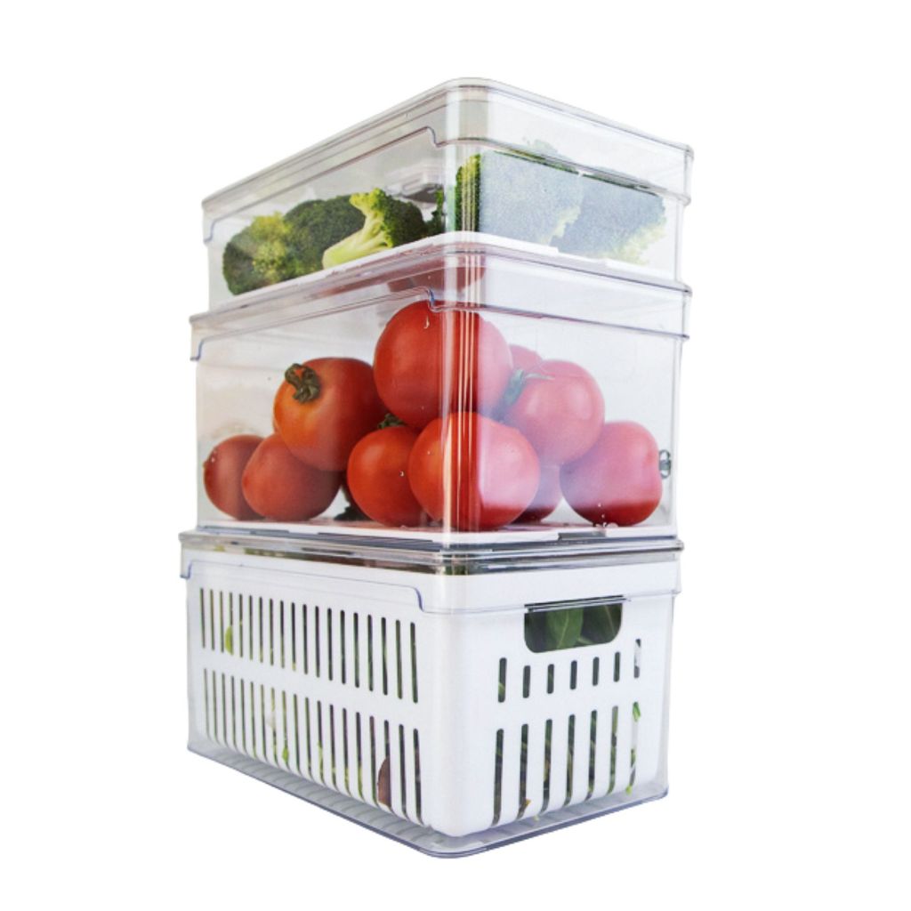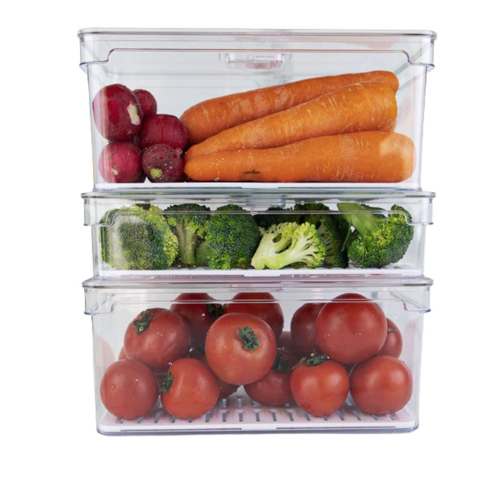 Kit 3 Organizadores de Geladeira Clear Fresh: 5L com Cesto + 5L com Tampa + 2,8L com Tampa – OU