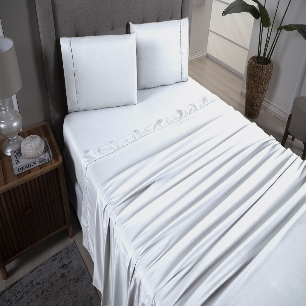 Jogo Lençol Queen 4 pçs 100% Algodão 400 fios Macio Não Faz Bolinha, Não Desbota