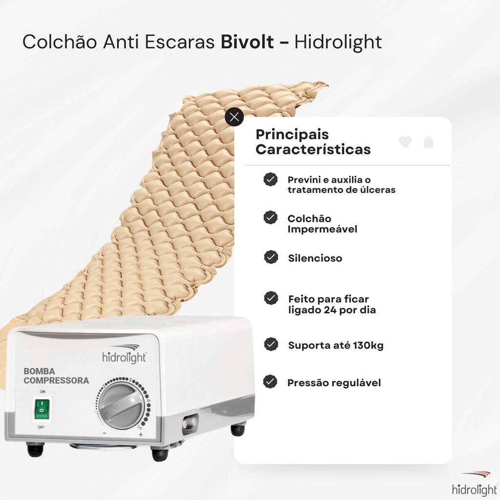Colchão Anti Escaras Pneumático Hospitalar 120kg 130 Celulas Hidrolight Certificado Anvisa