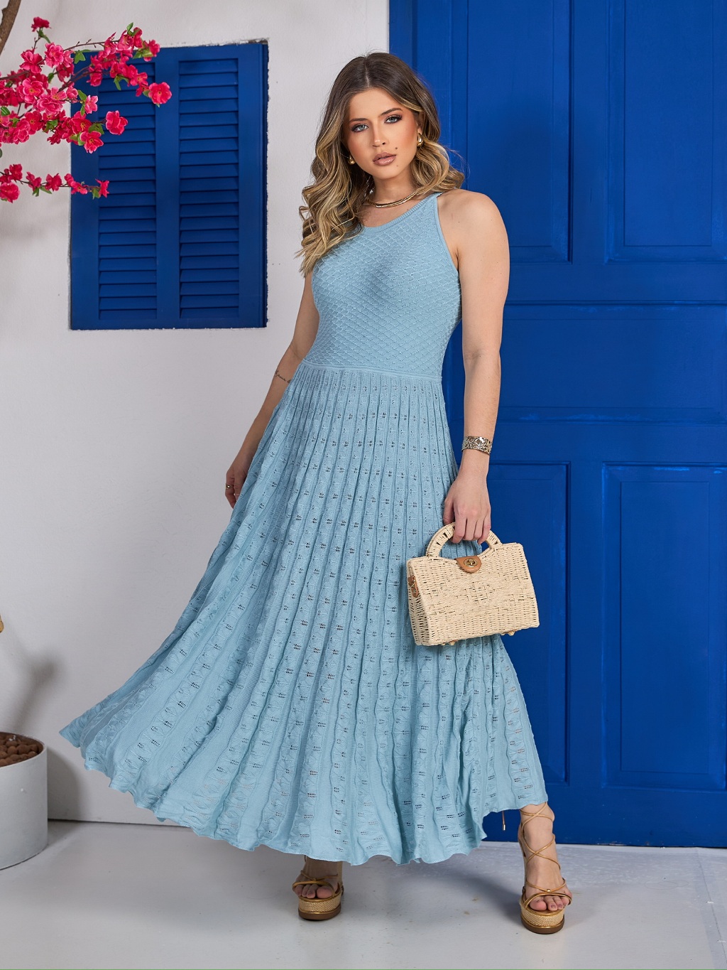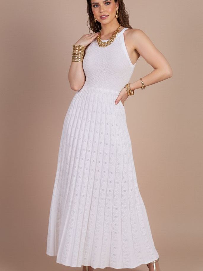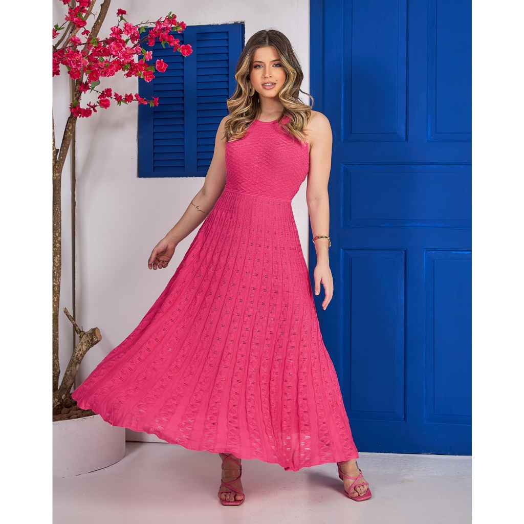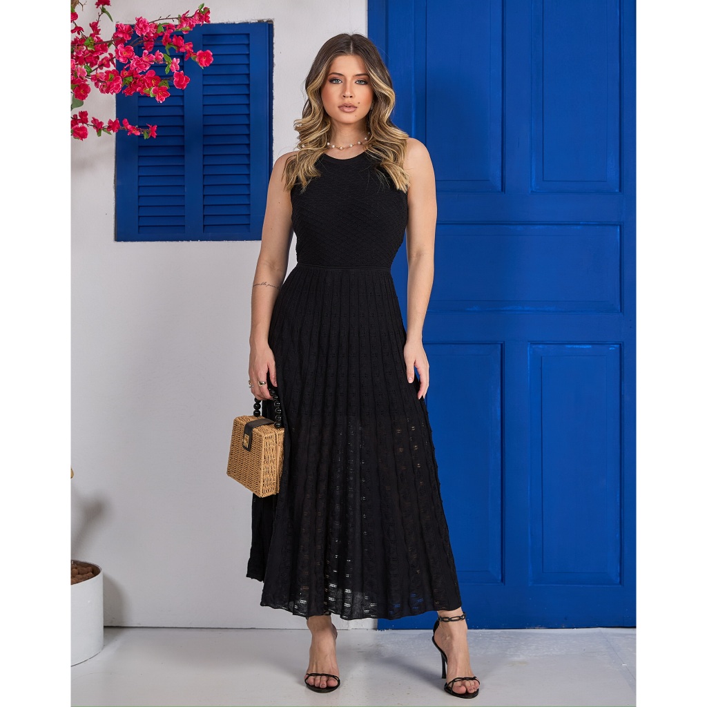 Vestido Plissado Midi (P ao GG) Verão Leve Fresco Trico Qualidade Veste do 36 ao 48 IS250