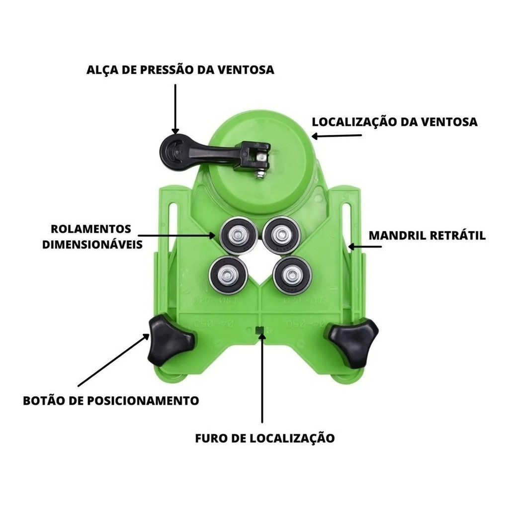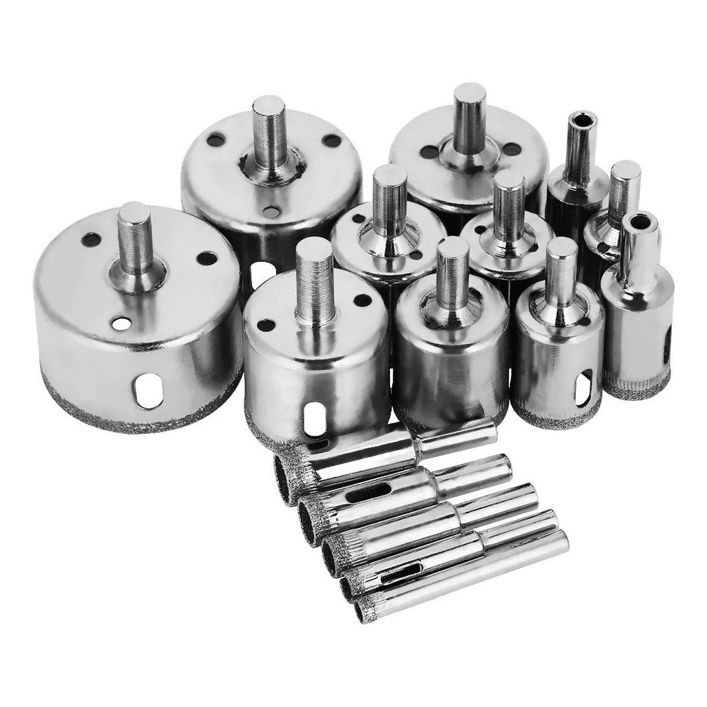 Kit 16 Brocas Diamantadas + Gabarito Furo 4mm x 83mm + Régua Multi Ângulos 6 Dobras para Cortes Piso