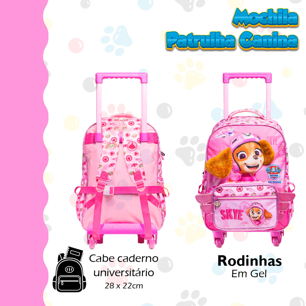 Kit Mochila Escolar Rodinha Paw Patrol Skye Menina Oficial SEM LANCHEIRA