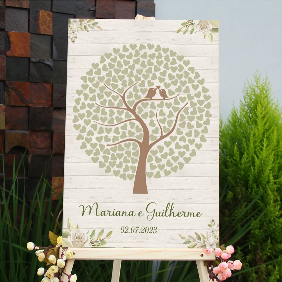 Placa Árvore Assinaturas Corações Recepção Casamento Personalizada