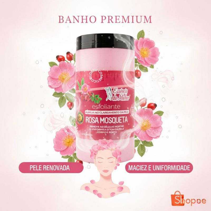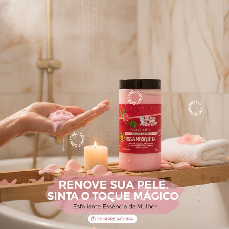 Esfoliante Rosa Mosqueta 1kg Essência da Mulher Clareador de Pele, Rosto e Corpo skincare