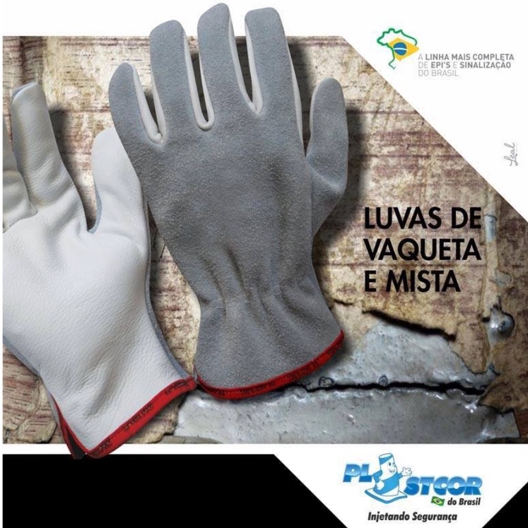 Luva Vaqueta Mista Palma Vaqueta Dorso Raspa Plastcor