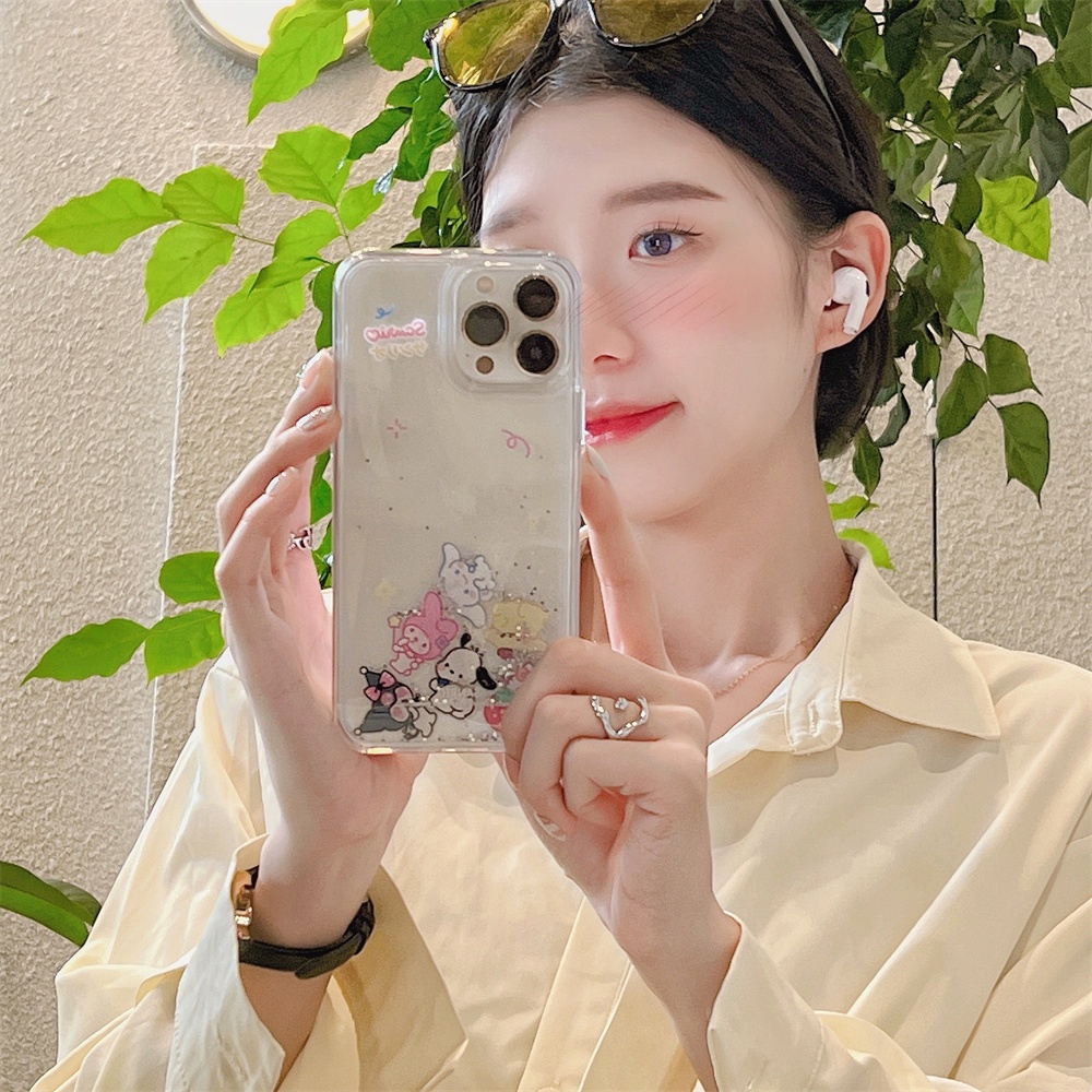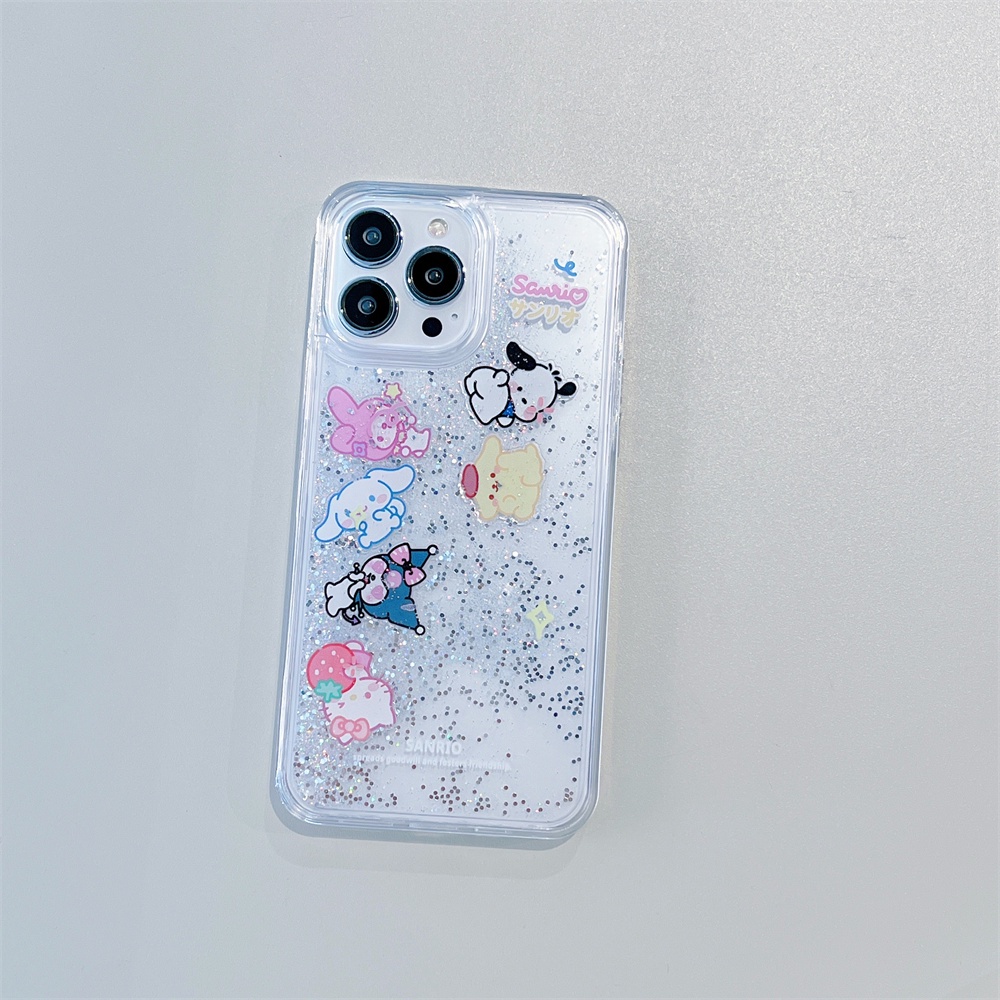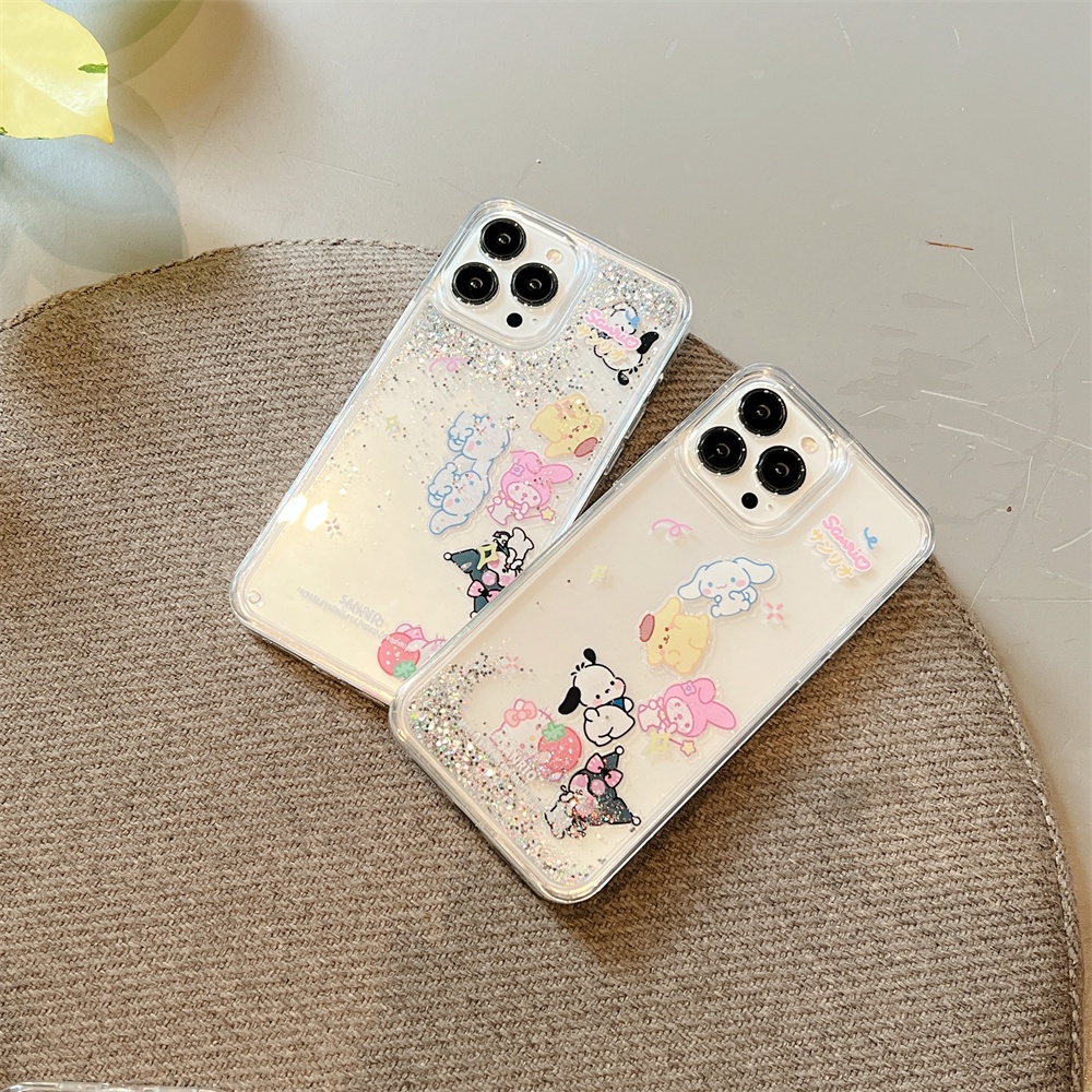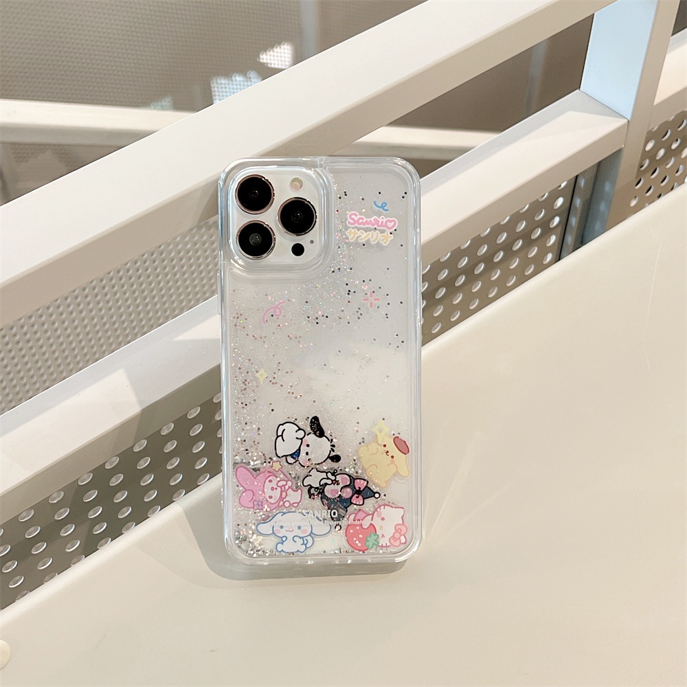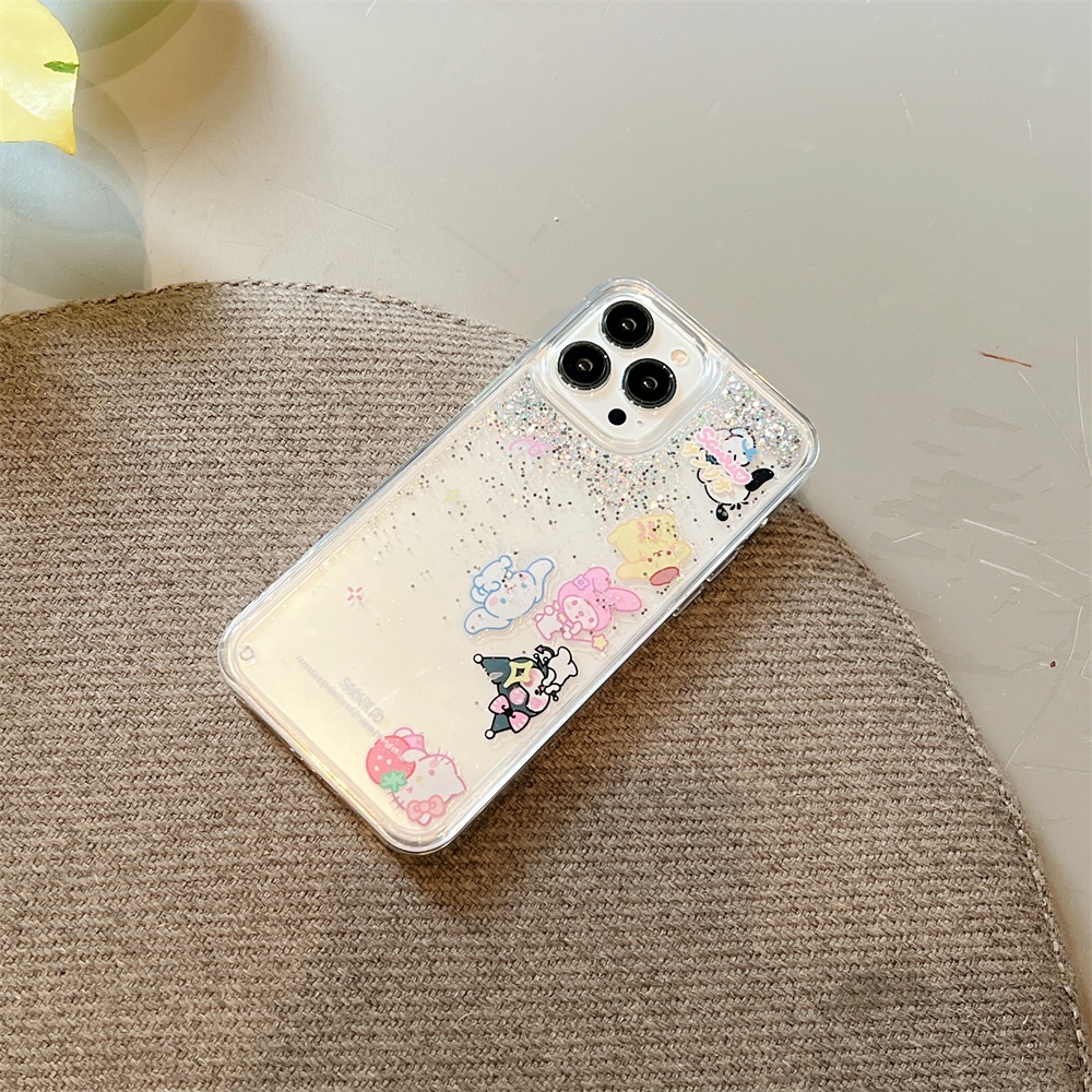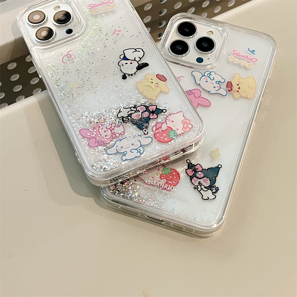Para iPhone17 16 Glitter Areia Movediça Sanrio Caso Apple ip 15 14 13 12 11 Pro Max 14 Plus Melodia Kuromi Brilho Líquid