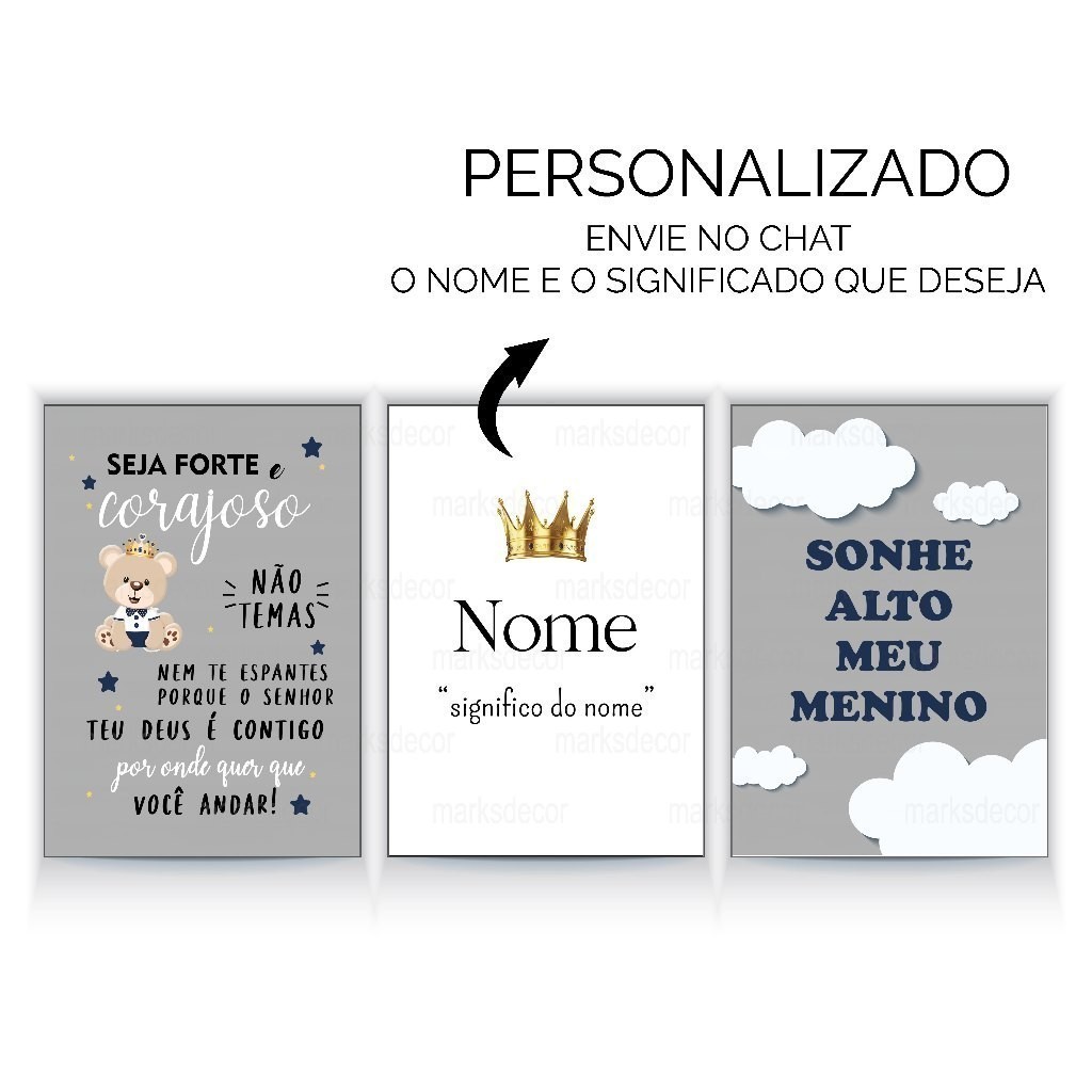 Quadros Decorativos Ursinho Príncipe, Urso, Kit 3 Peças Decoração Quarto Menino