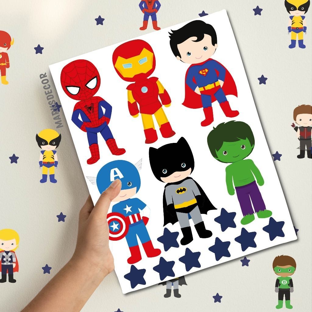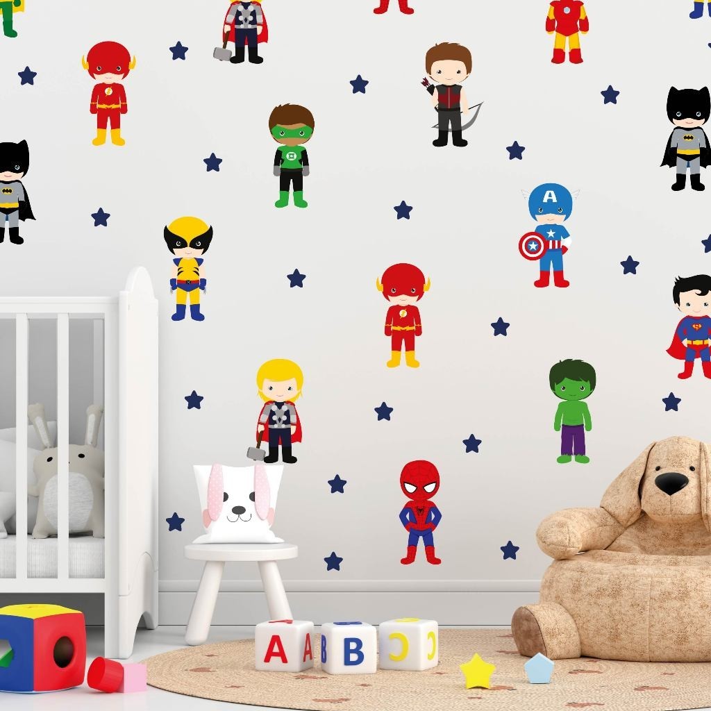 Kit 132 Adesivos Para Parede Heróis, Papel de Parede Infantil, Decoração Quarto Menino Vingadores