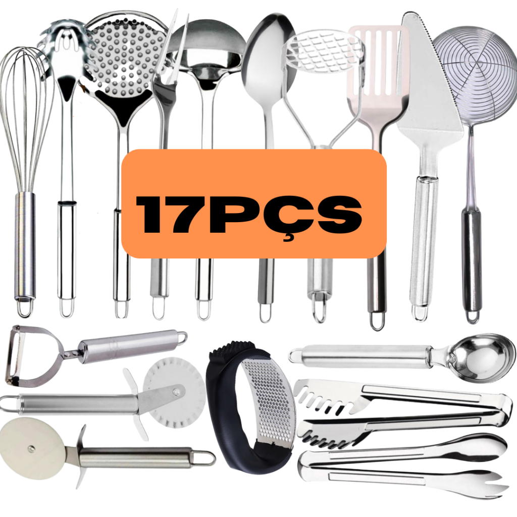 Kit Jogo 18 Talheres Utensílios De Aço 100% Inox Original Multiuso Para Sua Cozinha