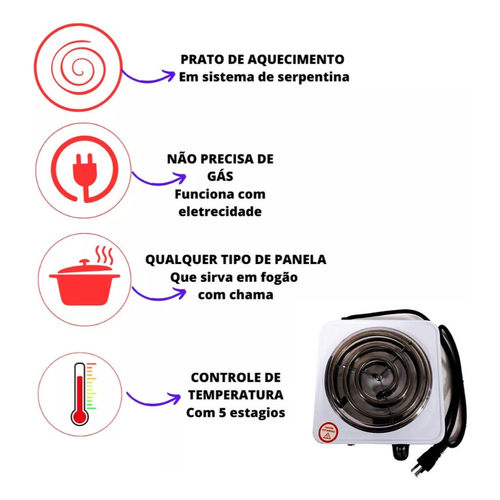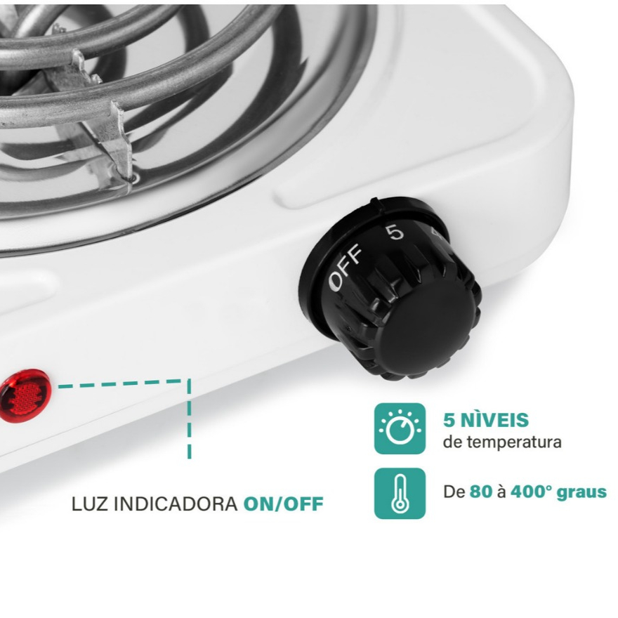 Fogareiro Elétrico Fogão 1 Boca 110V 1000W Cooktop Acampamento
