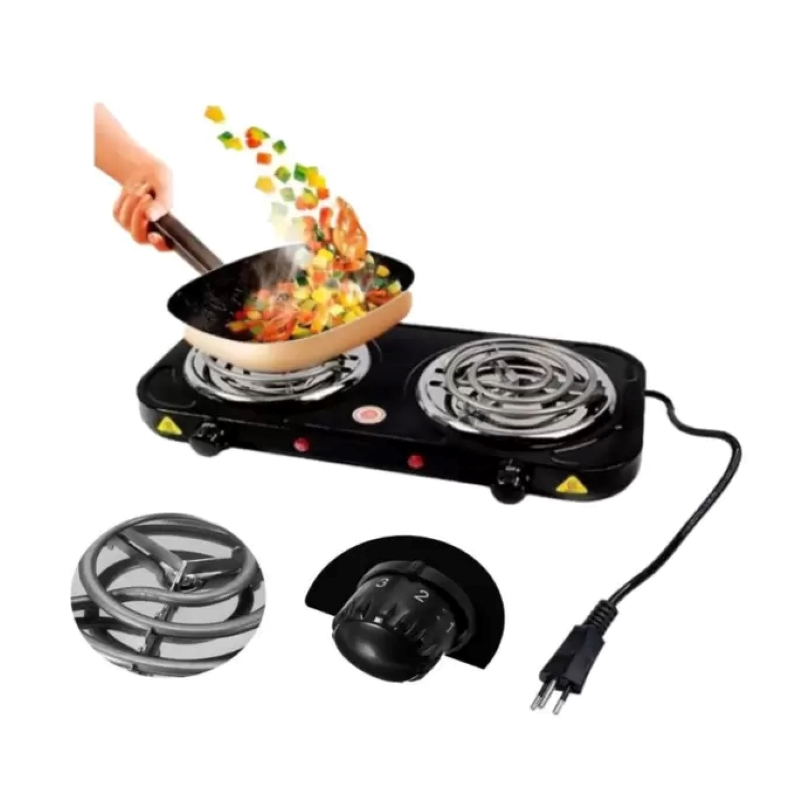 Fogareiro Elétrico Fogão 2 Bocas 110V 1000W Cooktop Acampamento Portatil