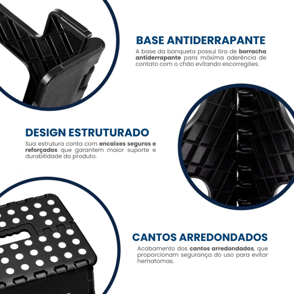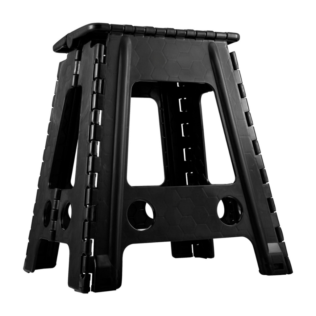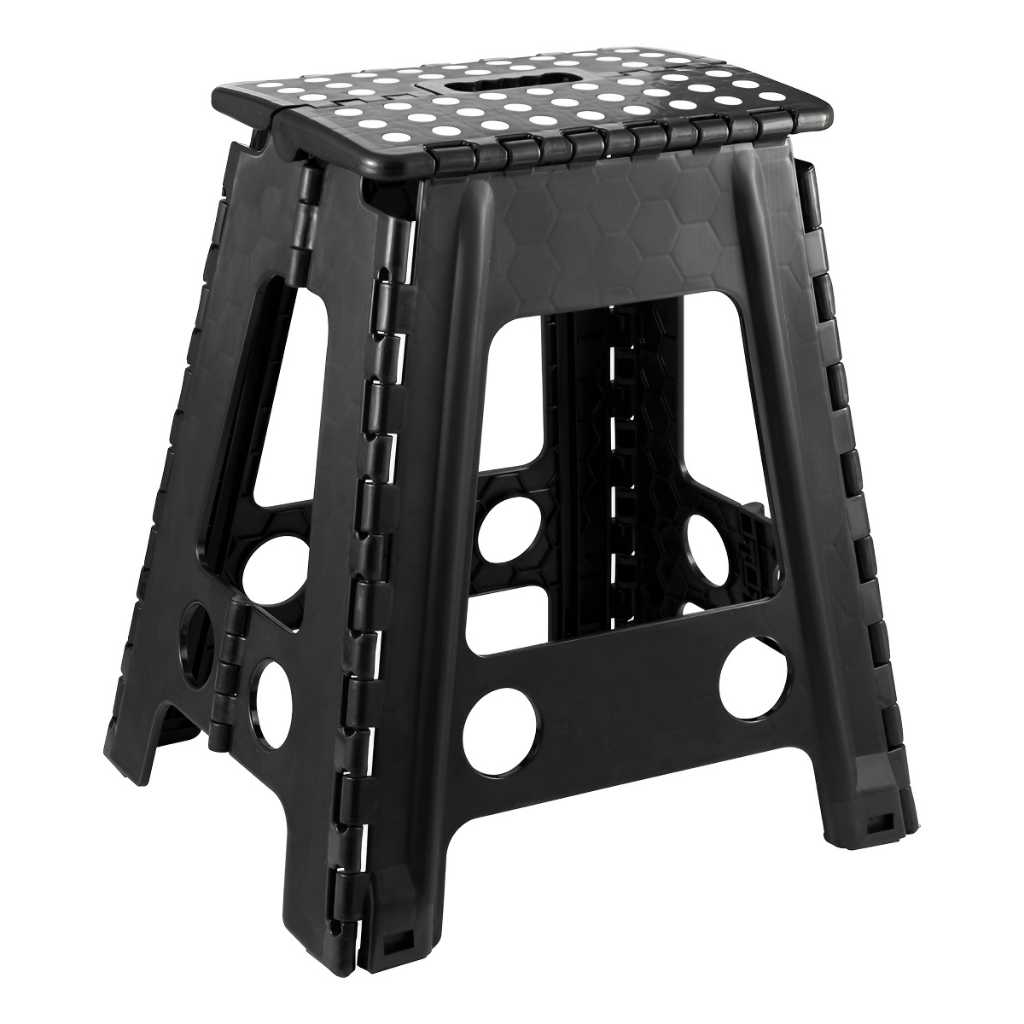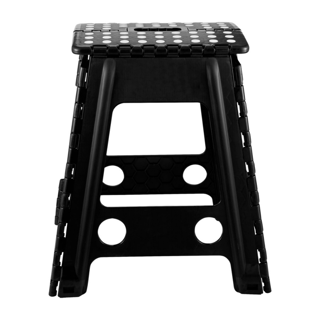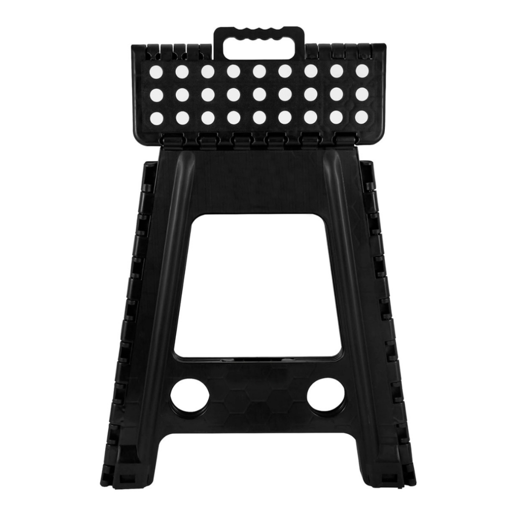 Banquinho Banqueta Retrátil Dobrável Portátil Multiuso Plástico Resistente Reforçado Preto 45cm