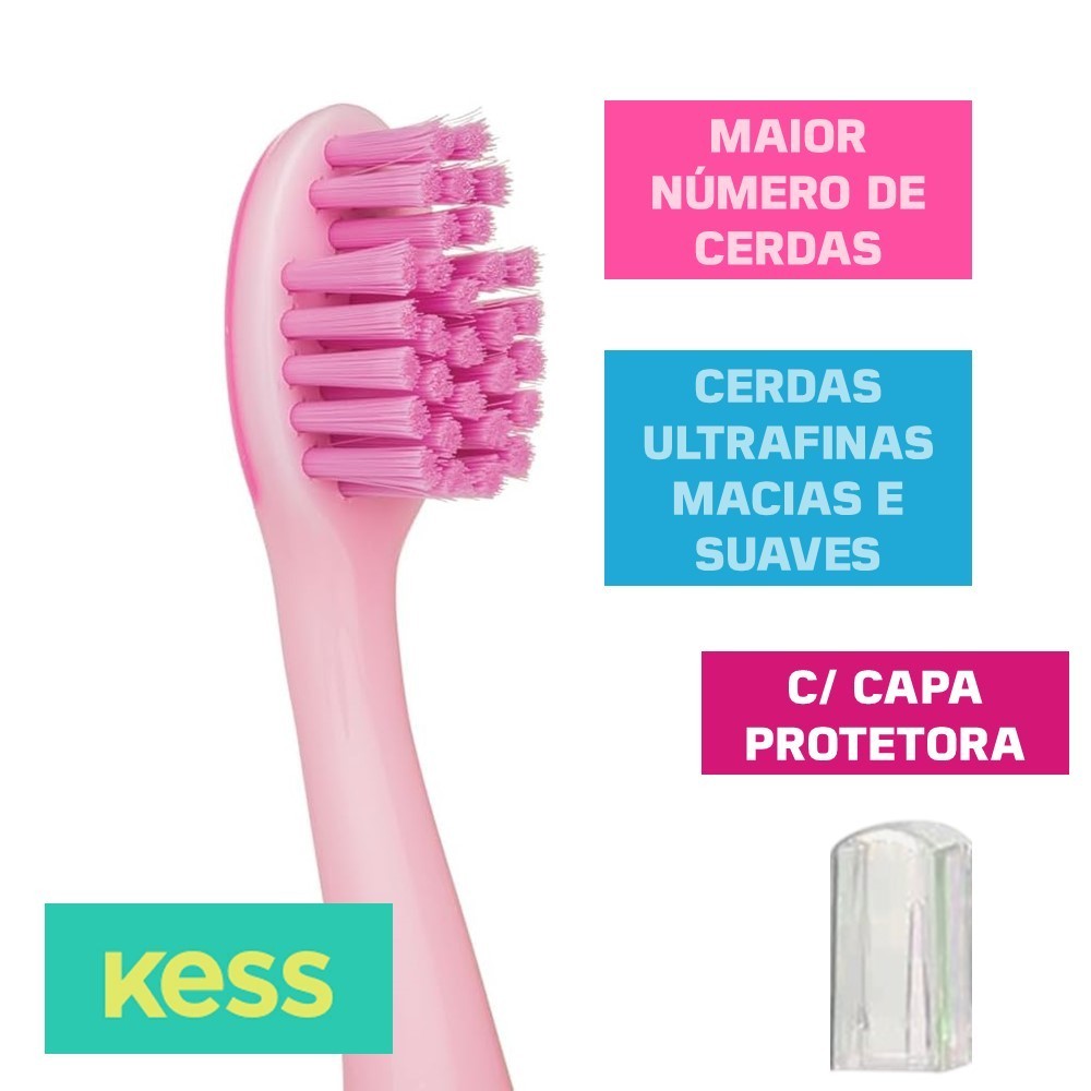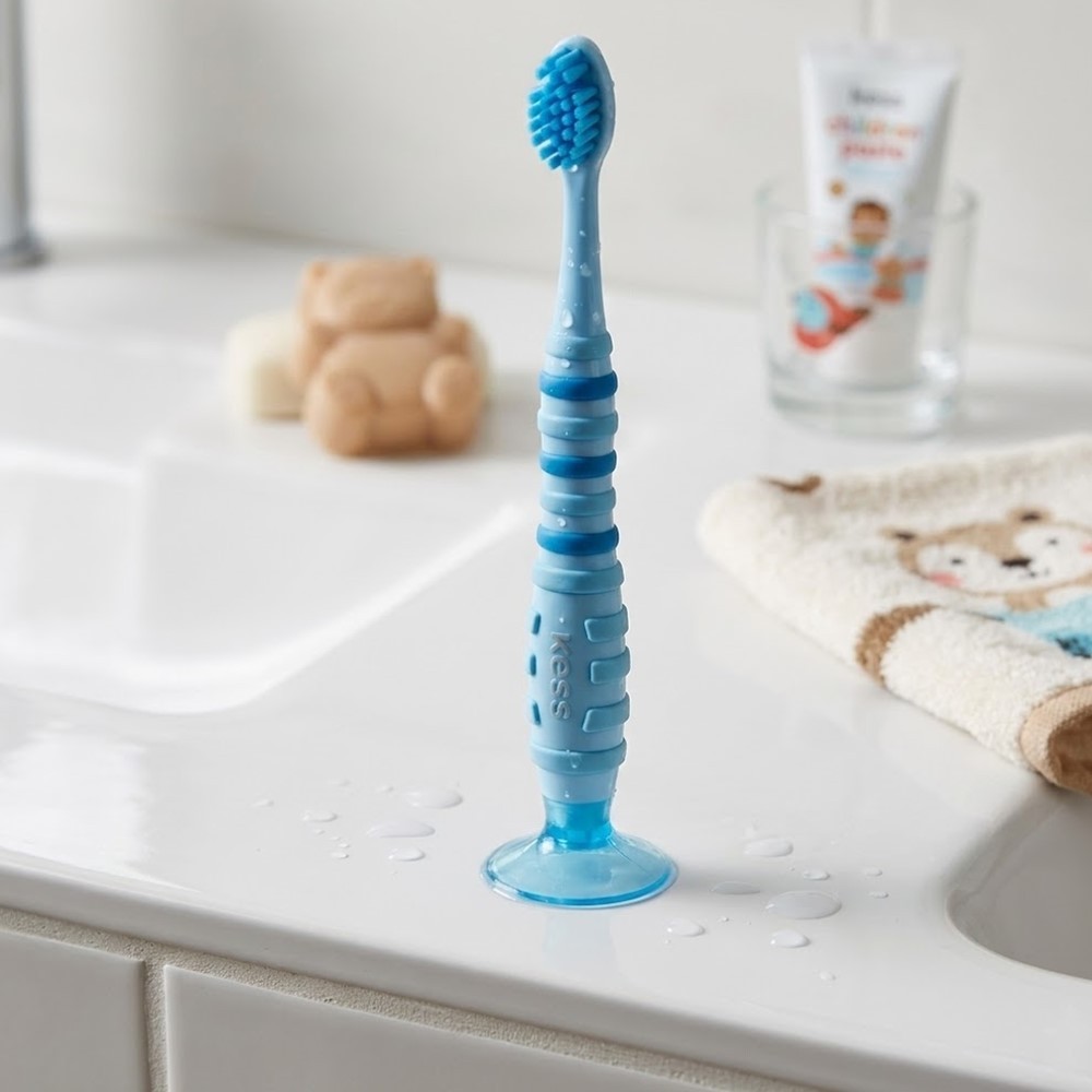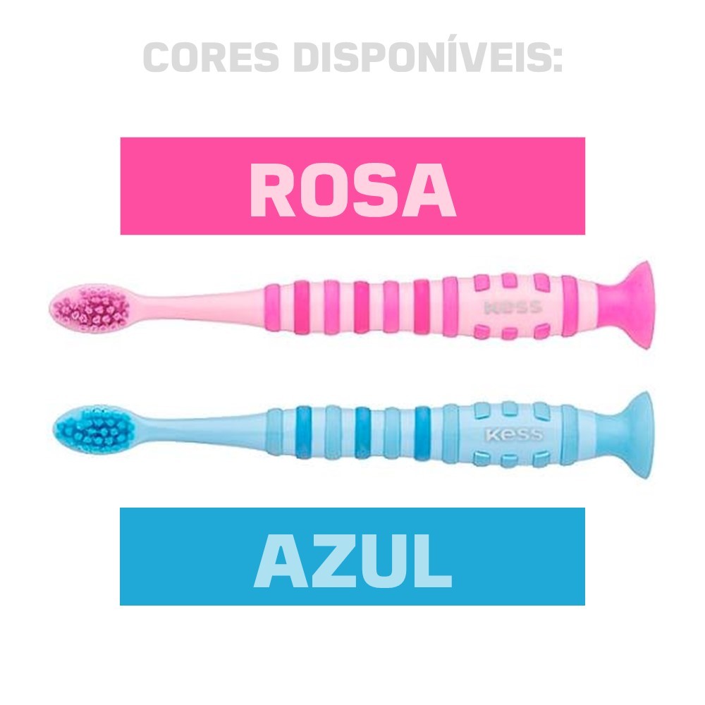 Kit 2 Escova de Dente Infantil com Ventosa Cerdas Extra Macia Pro Kids Kess Azul
