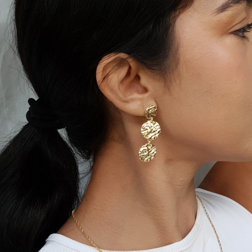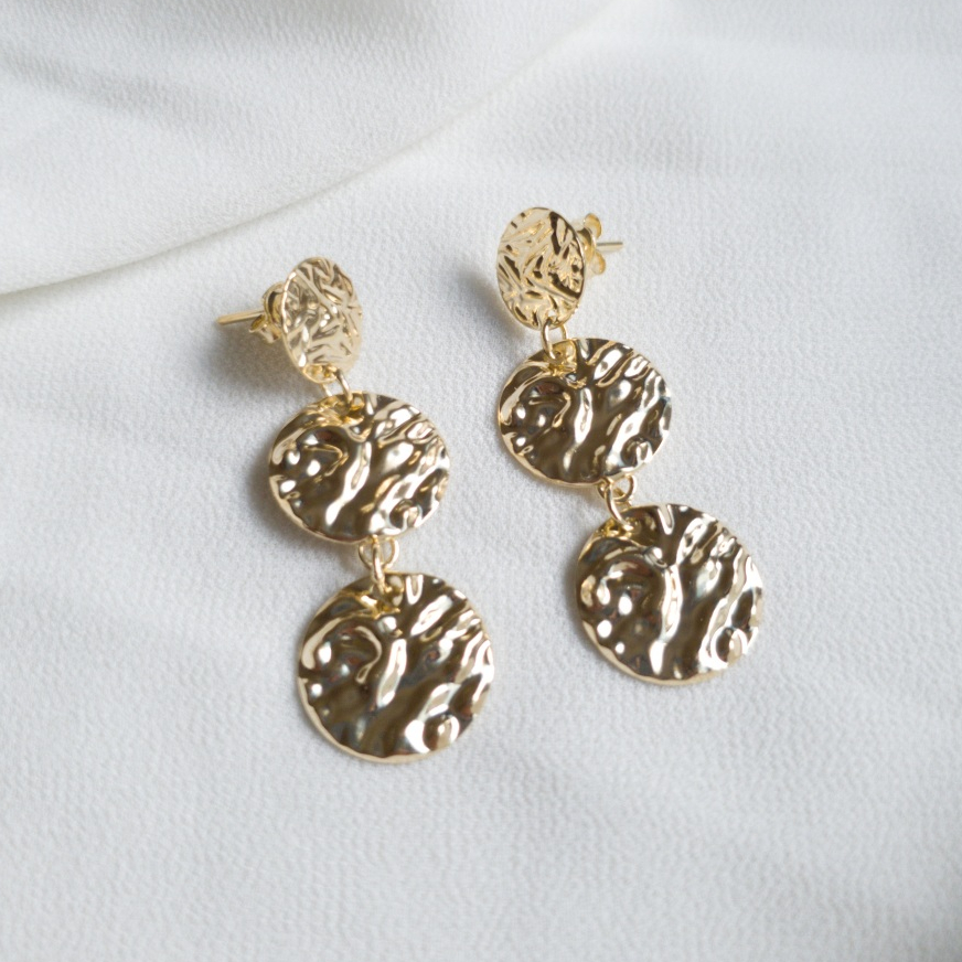 Brinco Textura Orgânica Banhado a Ouro - Semijoia Antialérgica