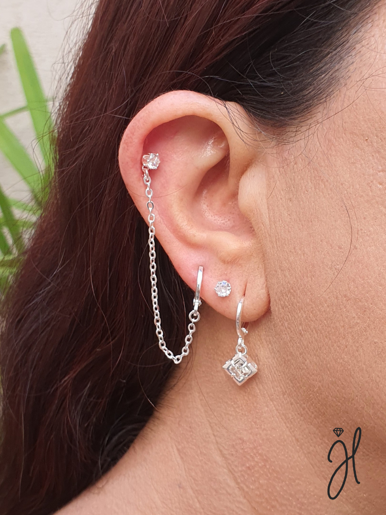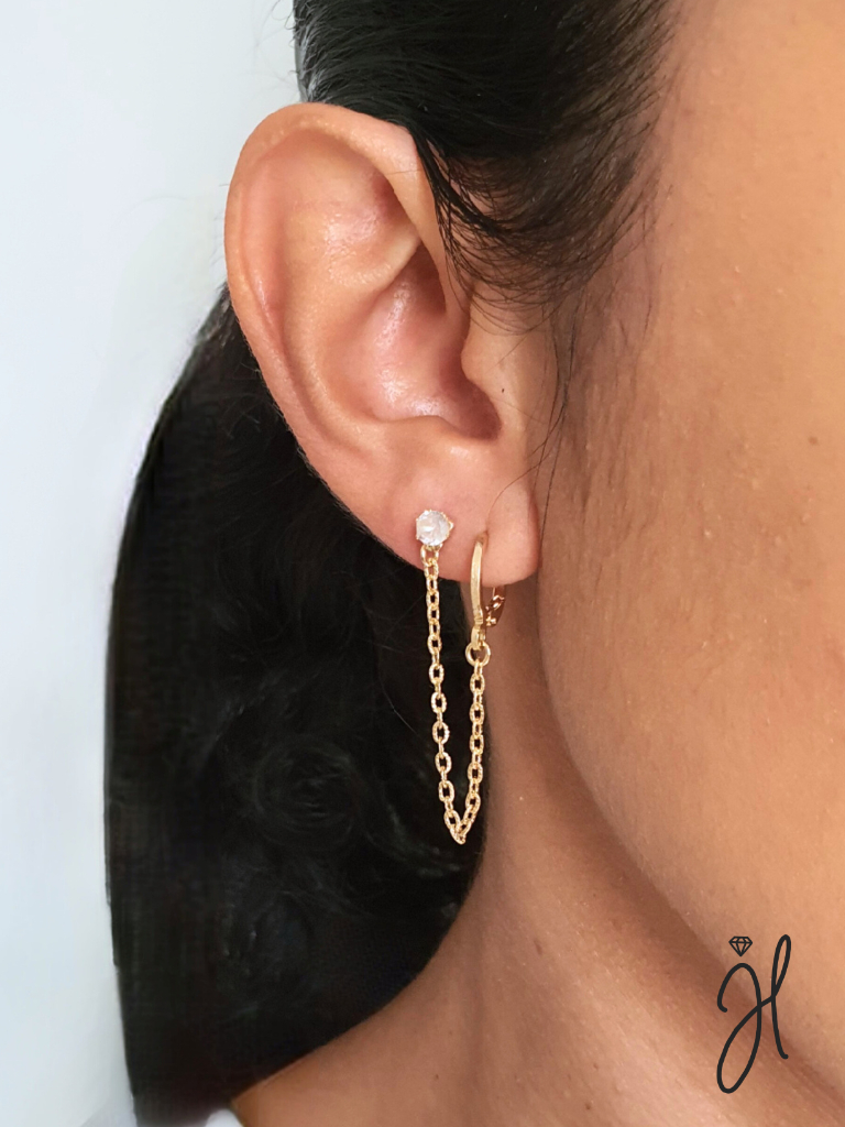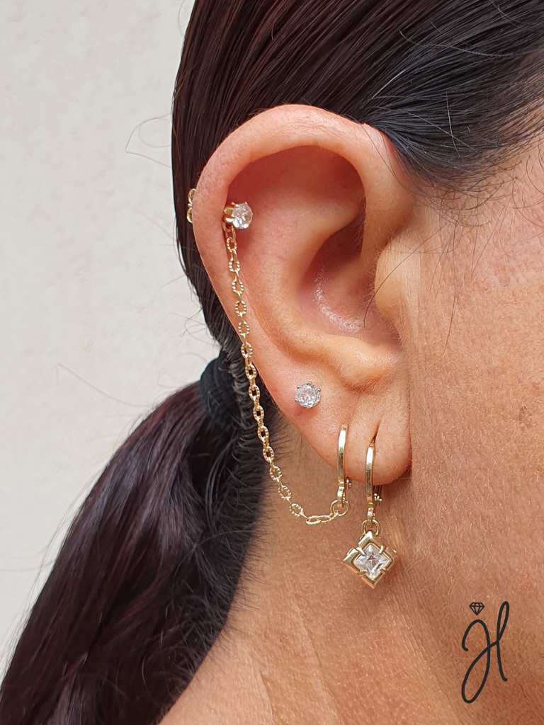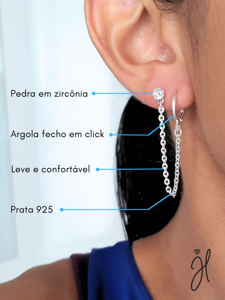 Par de Brincos Earline Argolinha e Zircônia (Semijoia Antialérgica)