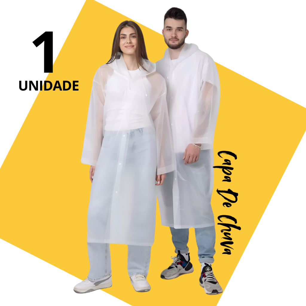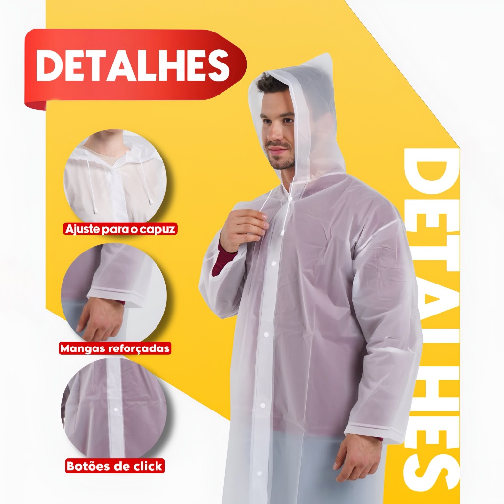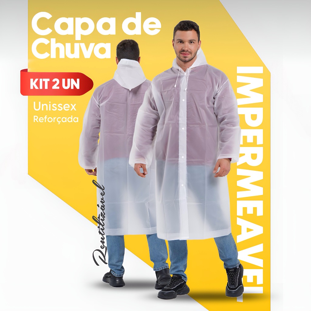 Kit 2 e 3 Capa de Chuva Grossa e Longa Capuz Transparente Reforçada Reutilizável Qualidade Premium