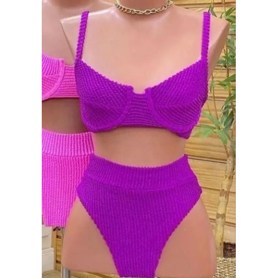Biquini meia taça cintura alta com bojo canelado anarruga