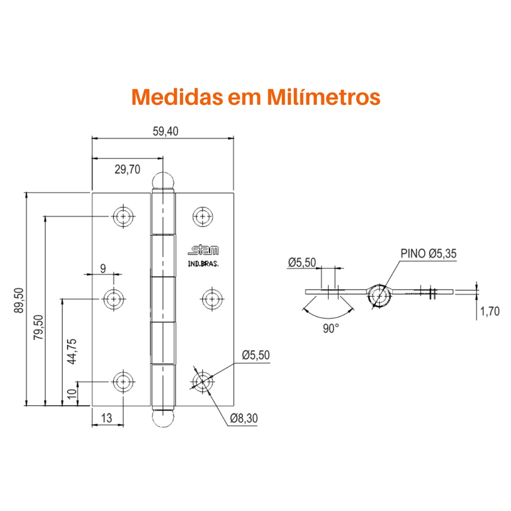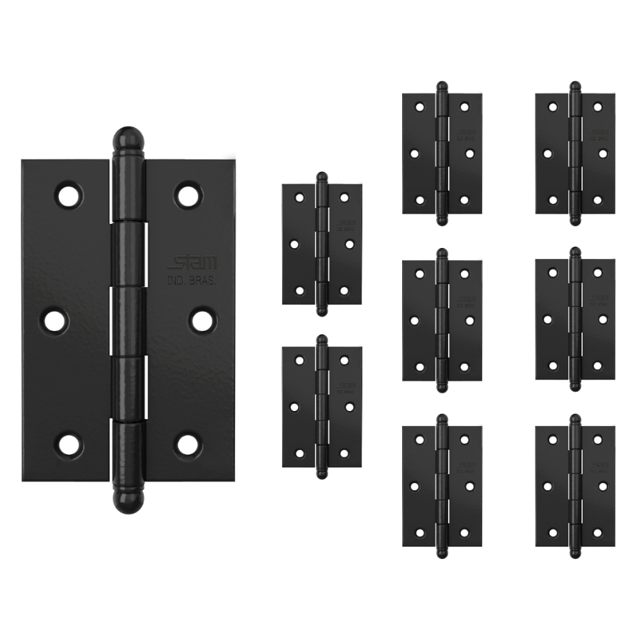 Kit 9 Dobradiças Porta de Madeira Stam Pretas