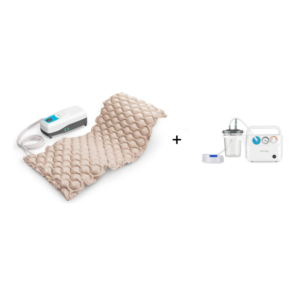 Kit Aspirador Cirúrgico Desobstruidor Das Vias Aereas Respiratórias + Colchão Pneumático Anti Feridas Úlceras 110V