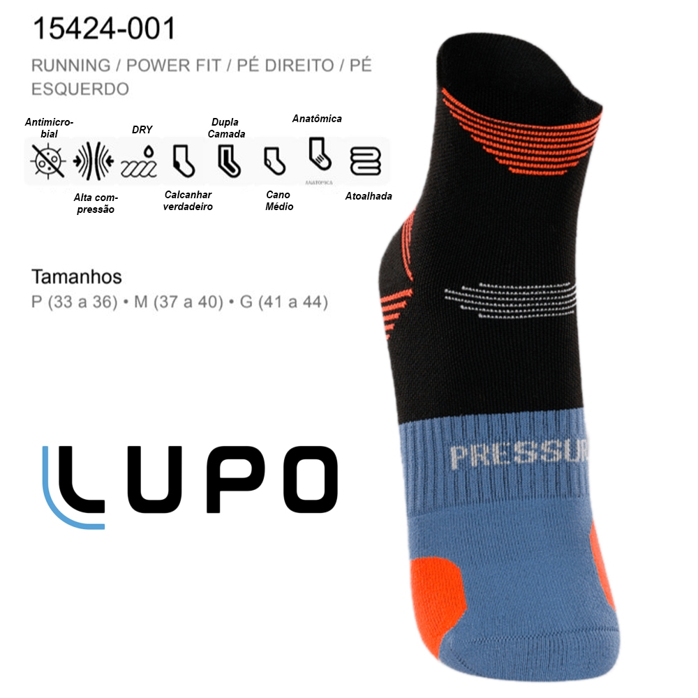 Kit 3 Meia Lupo Running Power Adulto Masculino Curta Poliamida