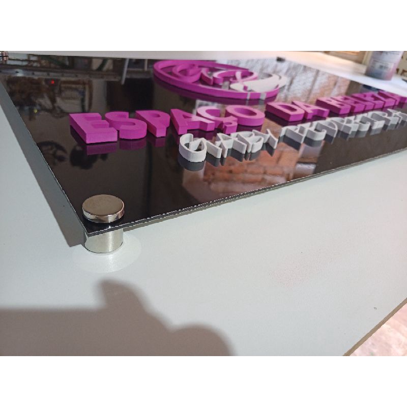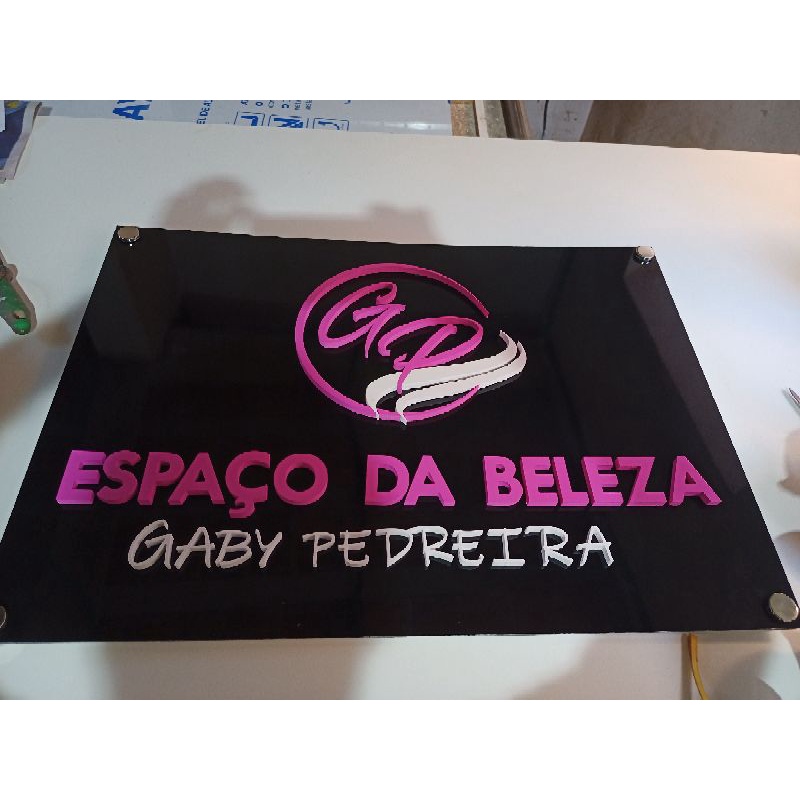 Placa em ACM ( alumínio composto) com 4 prolongadores, área interna e externa