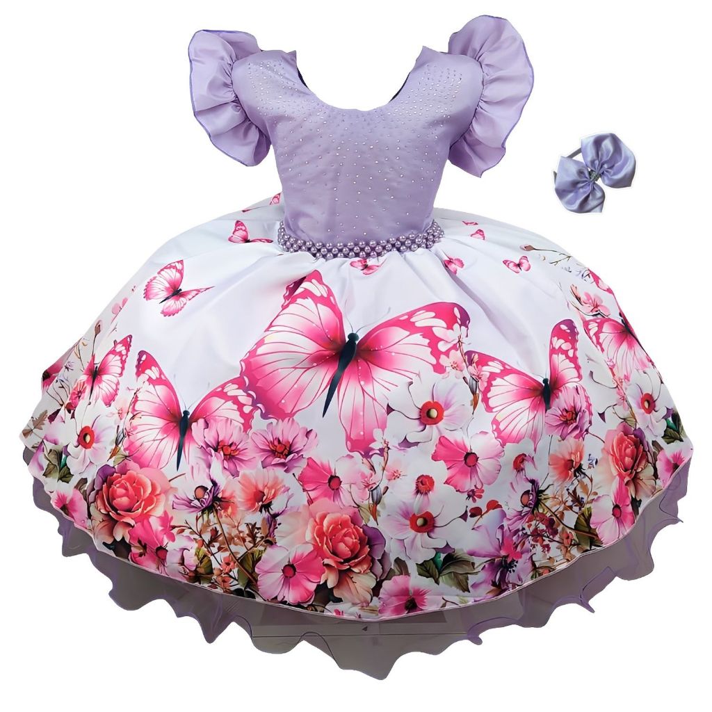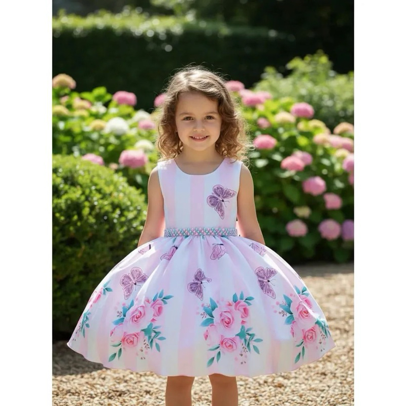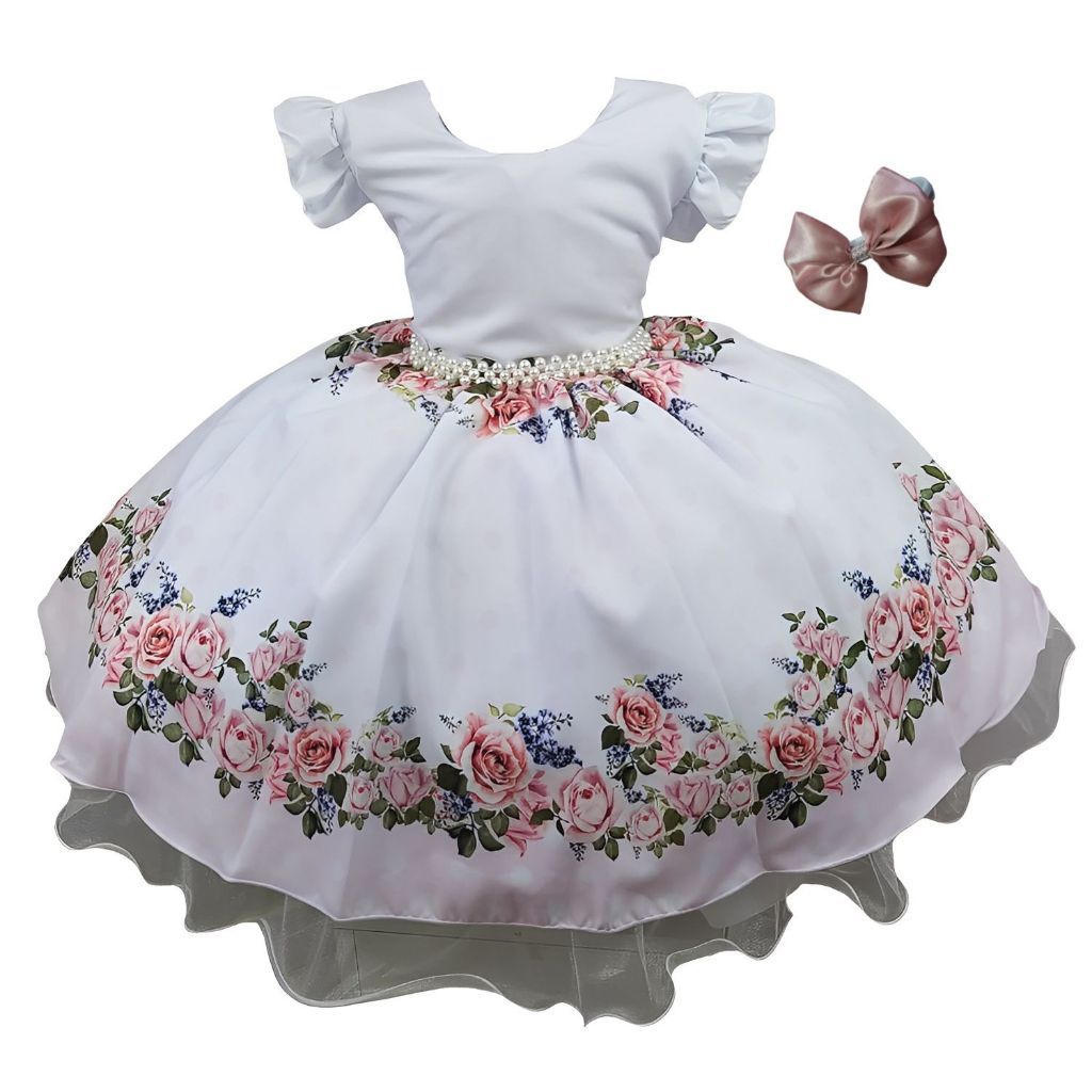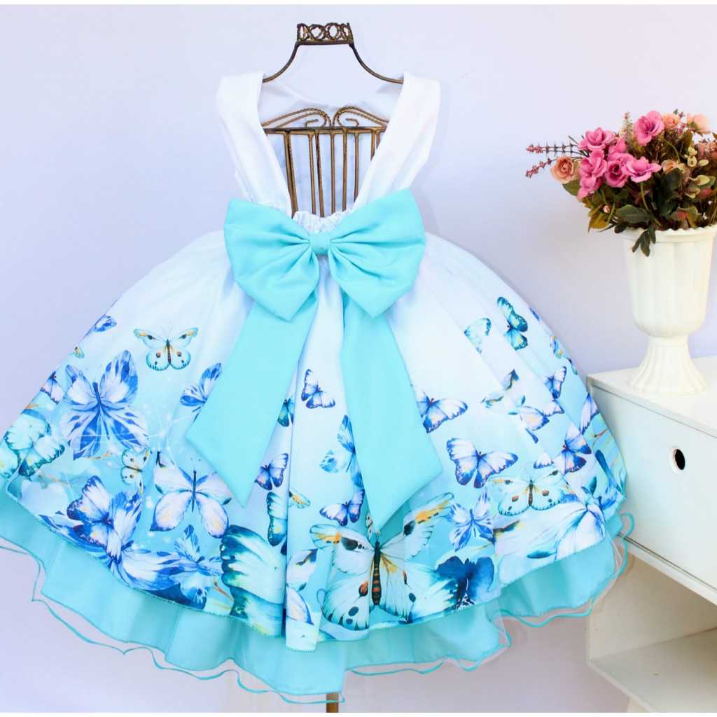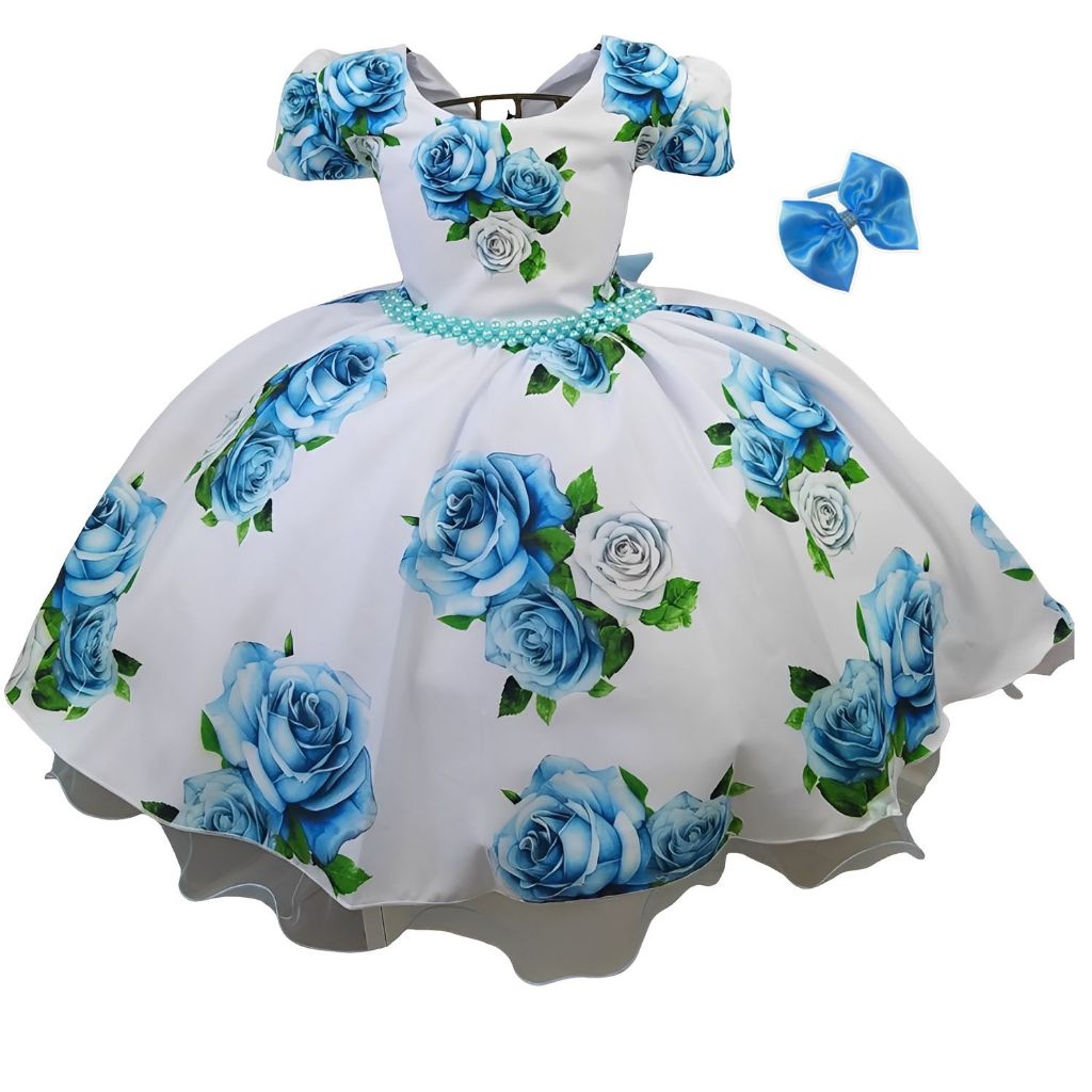 Vestido Festa Infantil Floral Azul Formatura Casamento