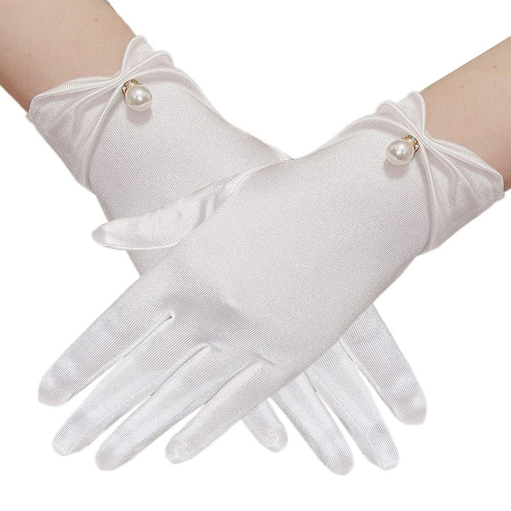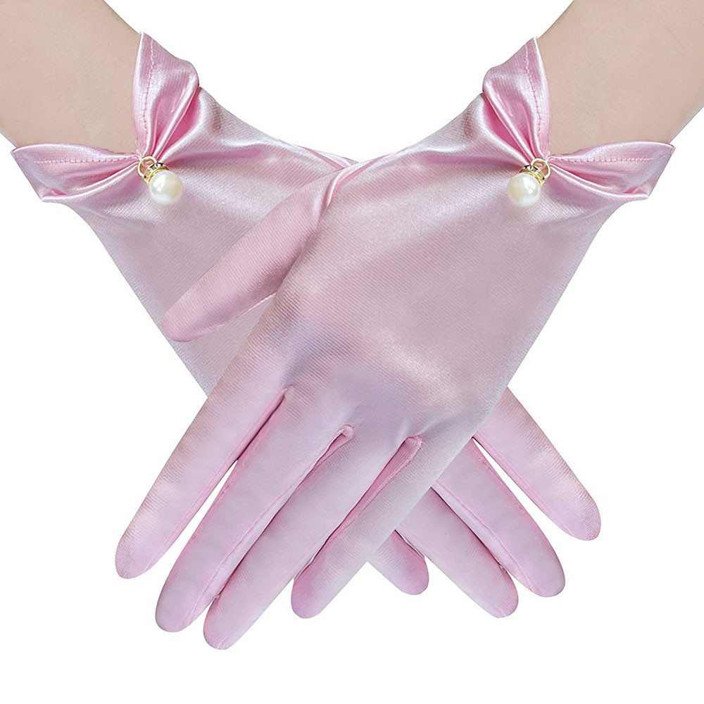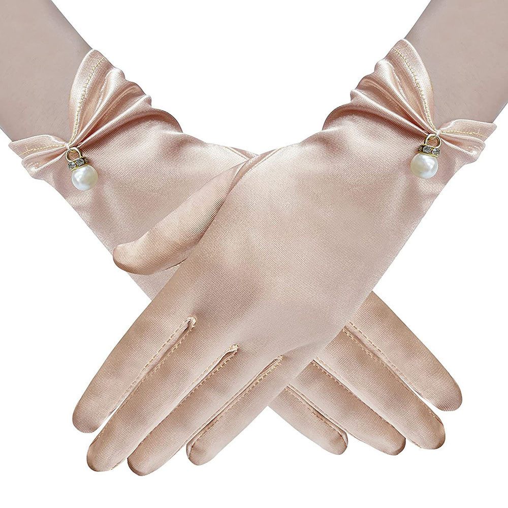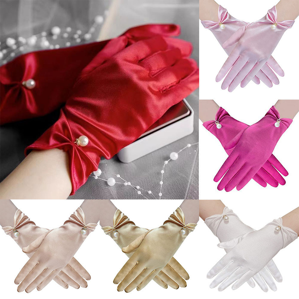 Luvas De Seda Satin Sólidas Pérola Acessórios De Casamento Retro Elegante