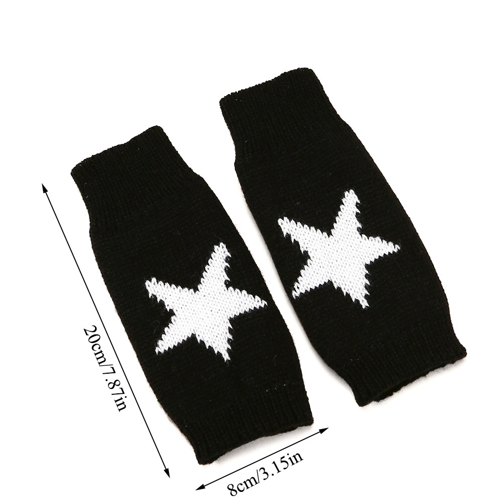 Y2K Luvas Vintage Half Finger Gloves Star Pentagrama De Malha Lã Macia De Mão Sem Dedos Quentes