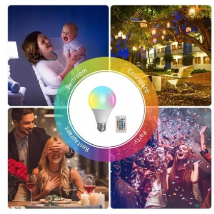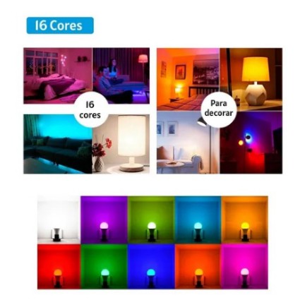 Lâmpada Bulbo Led Rgb 10w Luz Colorida 16 Cores Bivolt Com Controle