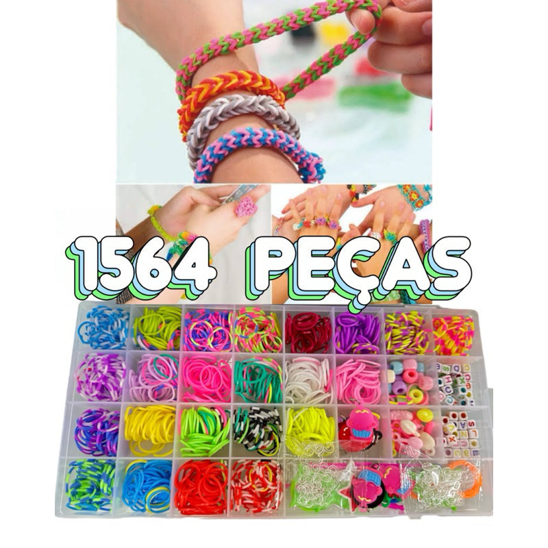kit Elásticos colorido De Silicone Para Cabelo elástico para fazer pulseiras + feche + agulha Pulseira