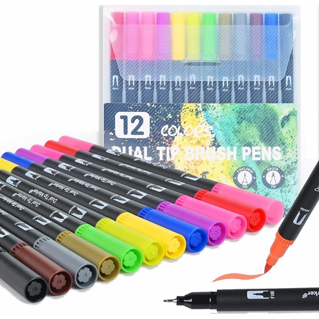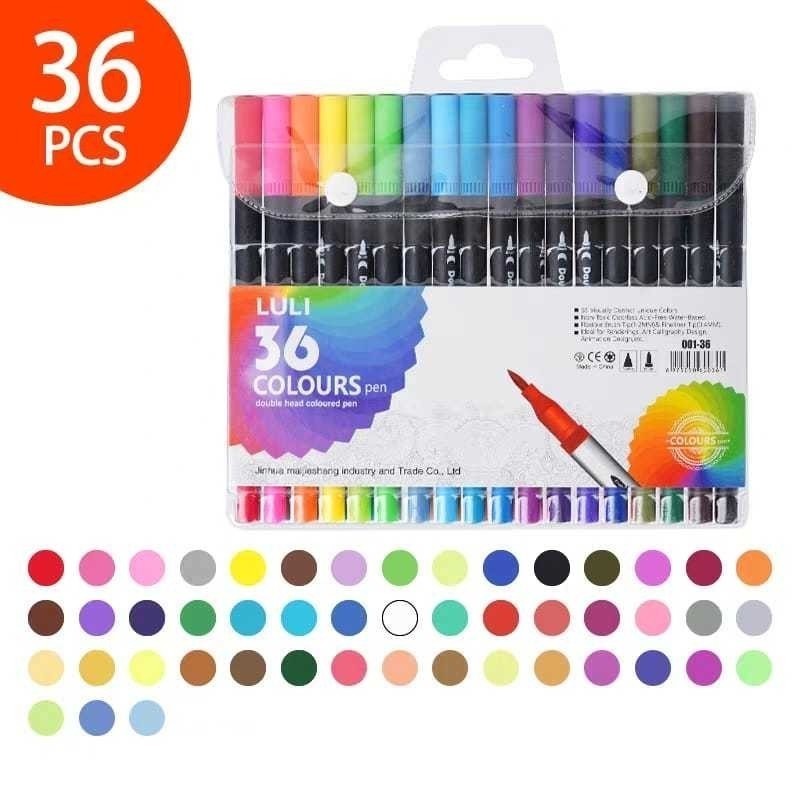 Kit 12/24/36/48 Caneta Brush Ponta Pincel Lettering Duas Pontas