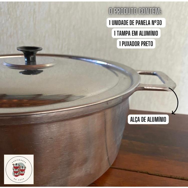 Panela Nº30 - 7 litros - caçarola grande de alumínio batido fundido com tampa em alumínio leve