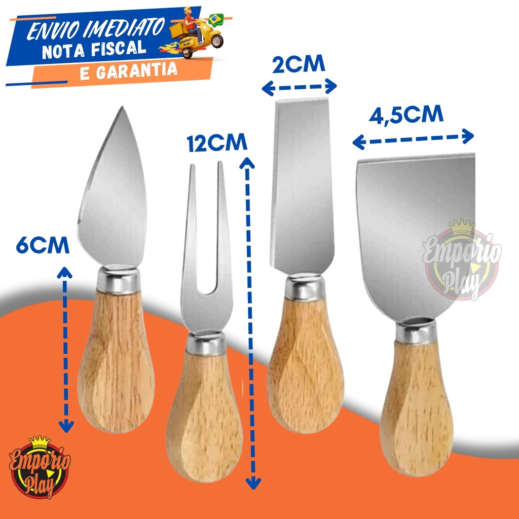 Kit Queijos Com Tabua Bambu e 4 Espátulas Para Queijos Frios Salame Petiscos Faca Garfo Picador Espatula
