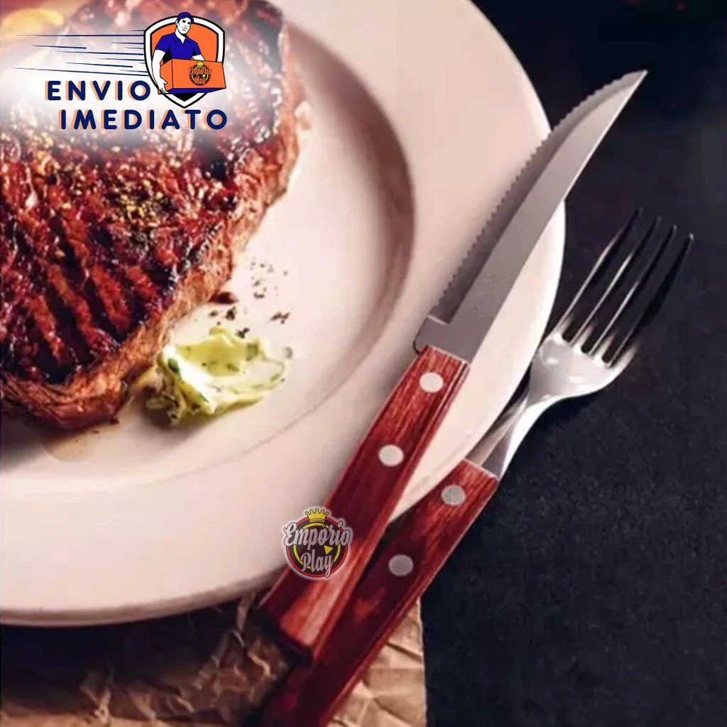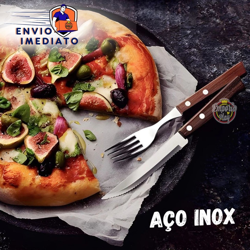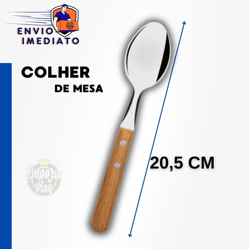Kit 18 Peças Jogo de Talher 6 Colher 6 Garfo 6 Faca de Inox com Cabo de Madeira Faqueiro Conjunto