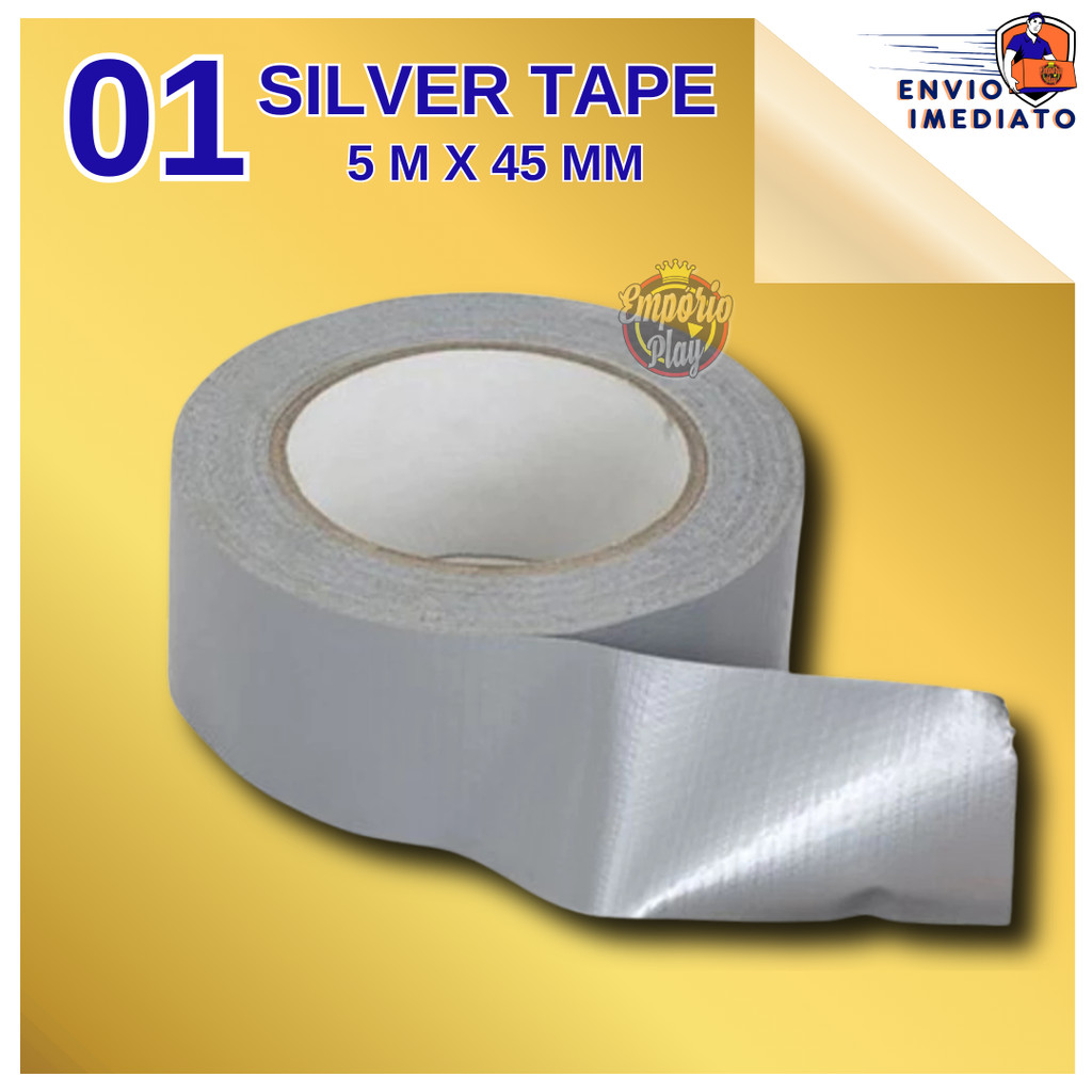 Fita Adesiva Silver Tape Multiuso Fita Prateada Rolo 5 Metros 45mm Resistente Á Prova D'agua Prata Cinza