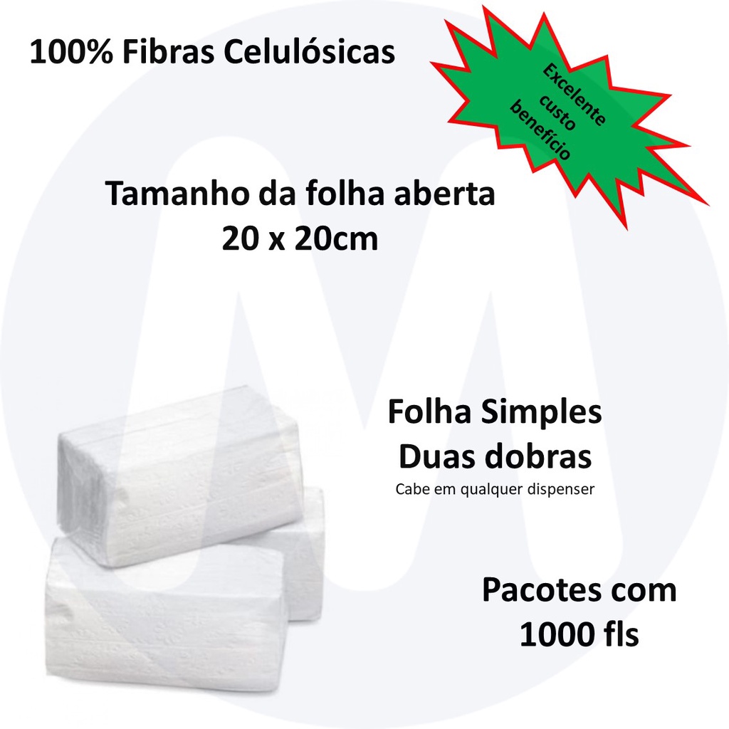 Papel Toalha De Mãos Interfolhado Folha Simples 20x20 1000 Folhas