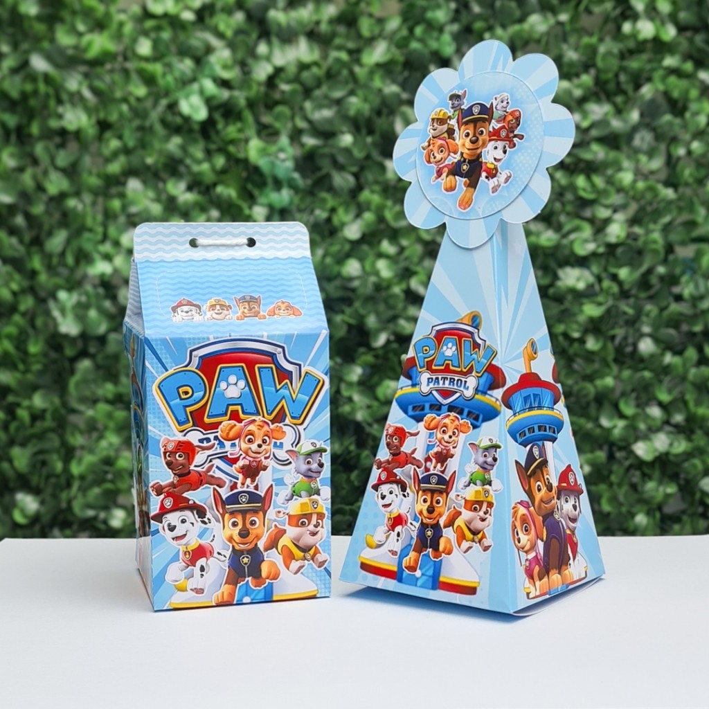 Kit 10 Caixinhas Lembrancinha Patrulha Canina | 5 Caixa Milk + 5 Caixa Pirâmide