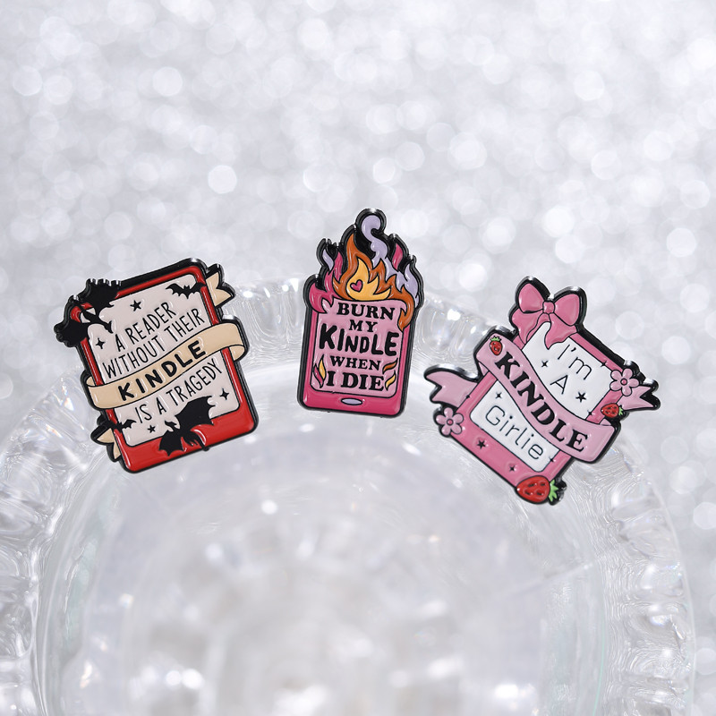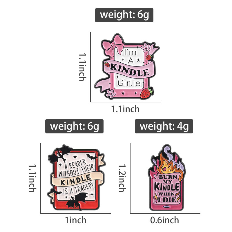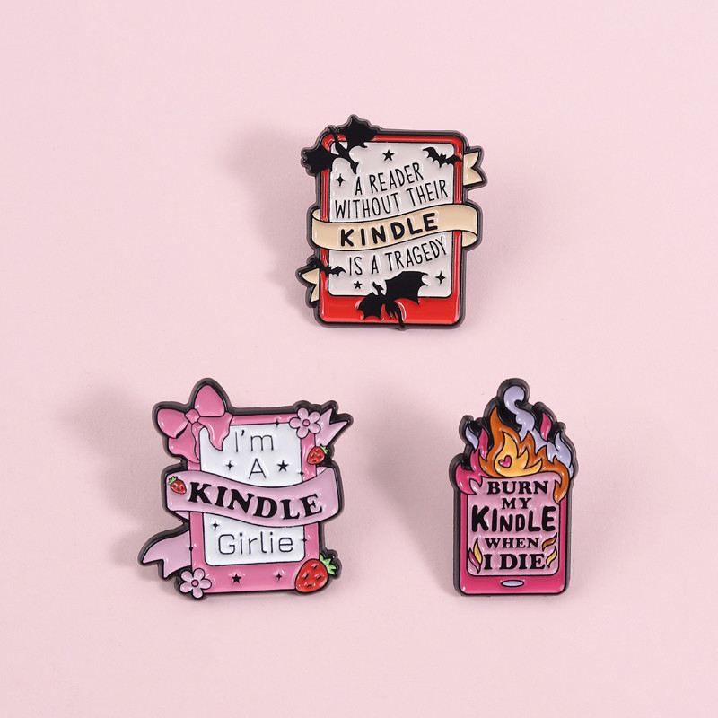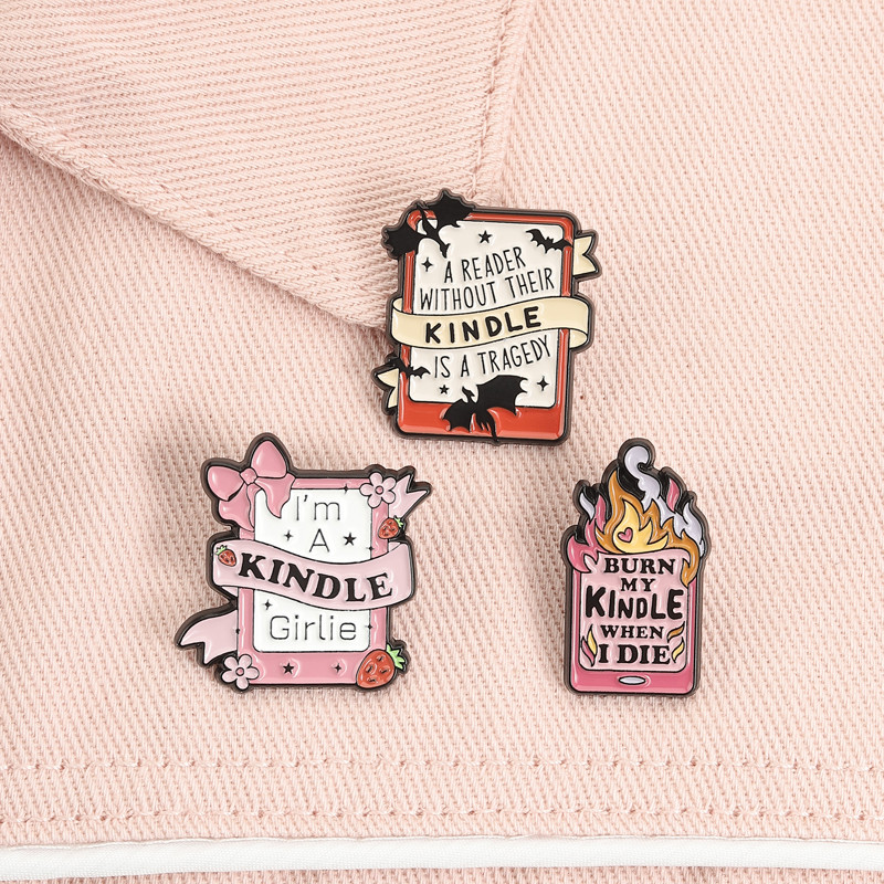 Kindle Leitor Fita Livro Esmalte Pino Dos Desenhos Animados Amante Broche Emblemas Mochila Acessórios Presentes Para Ami