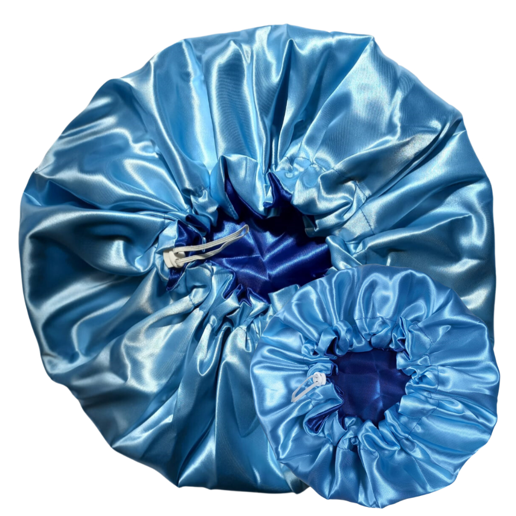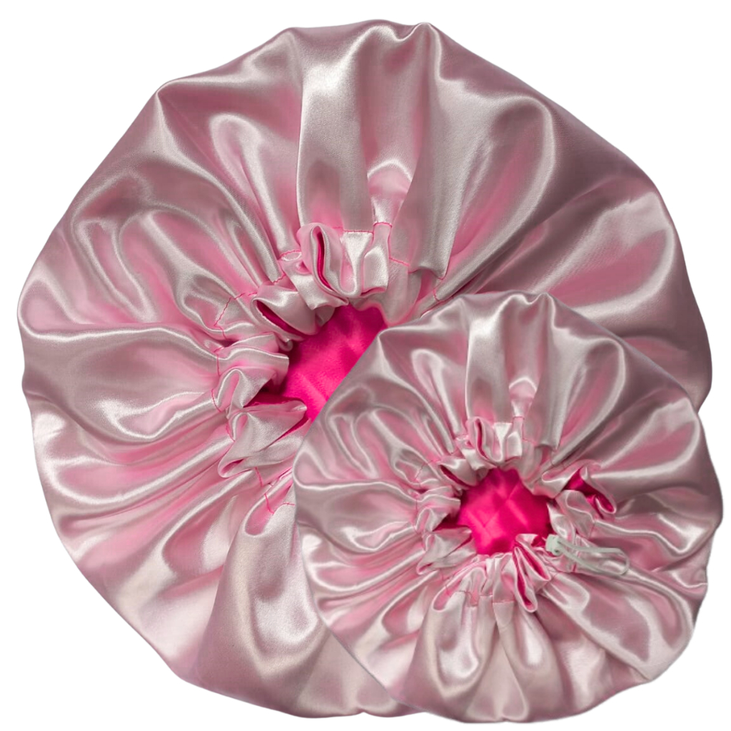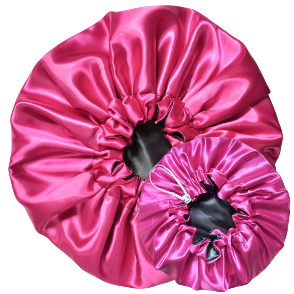 Kit uma touca de cetim Extra Grande+ 1 touca G tal mãe tal filha antifrizz