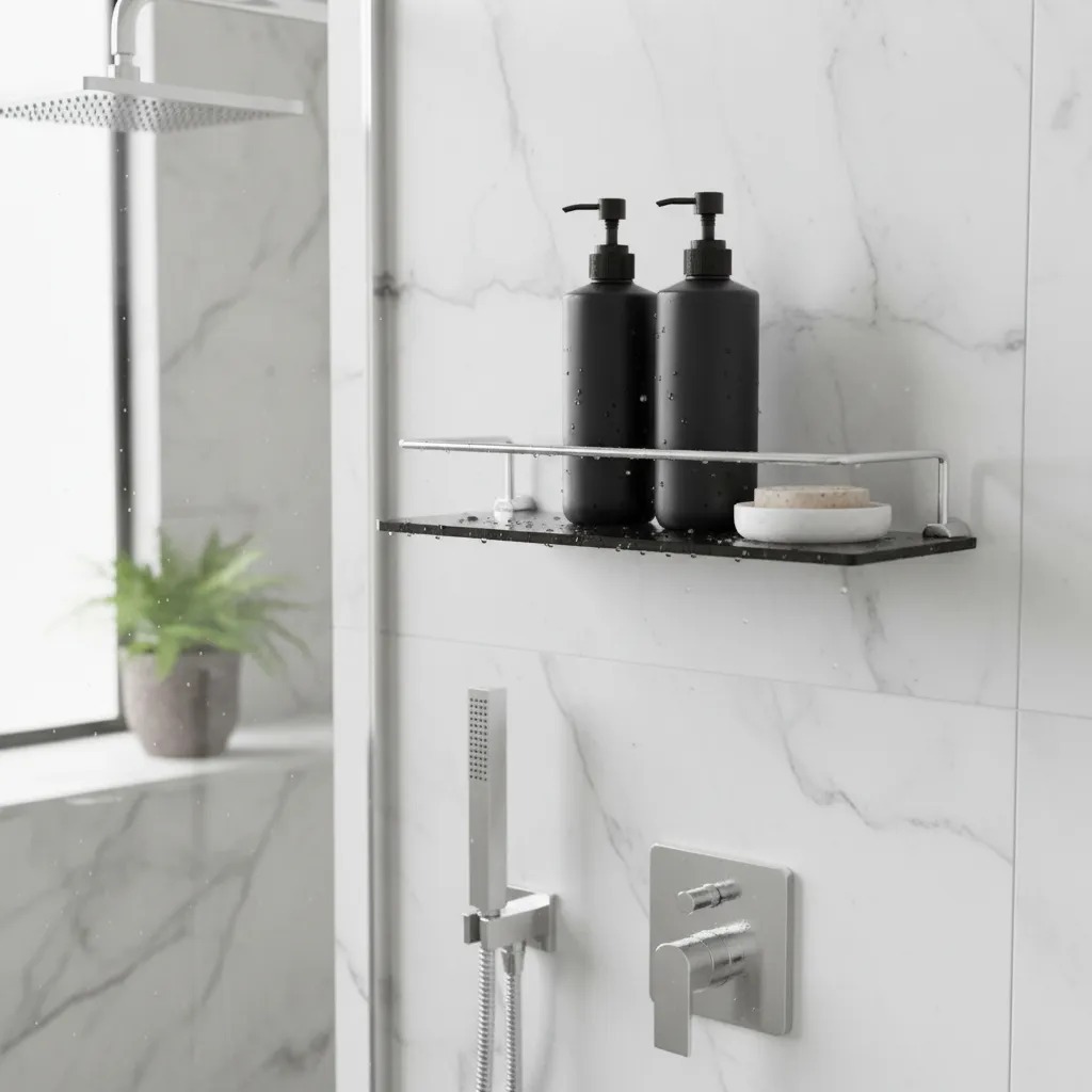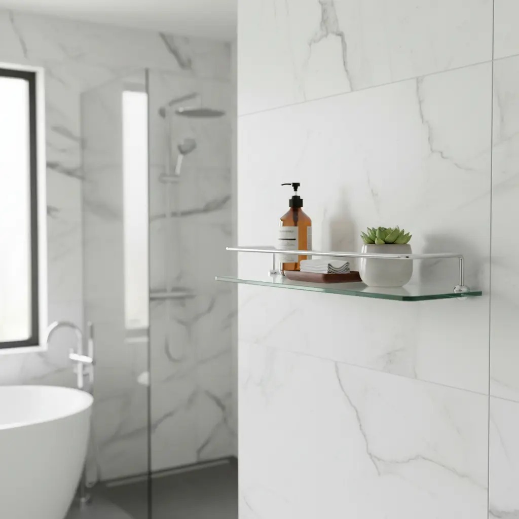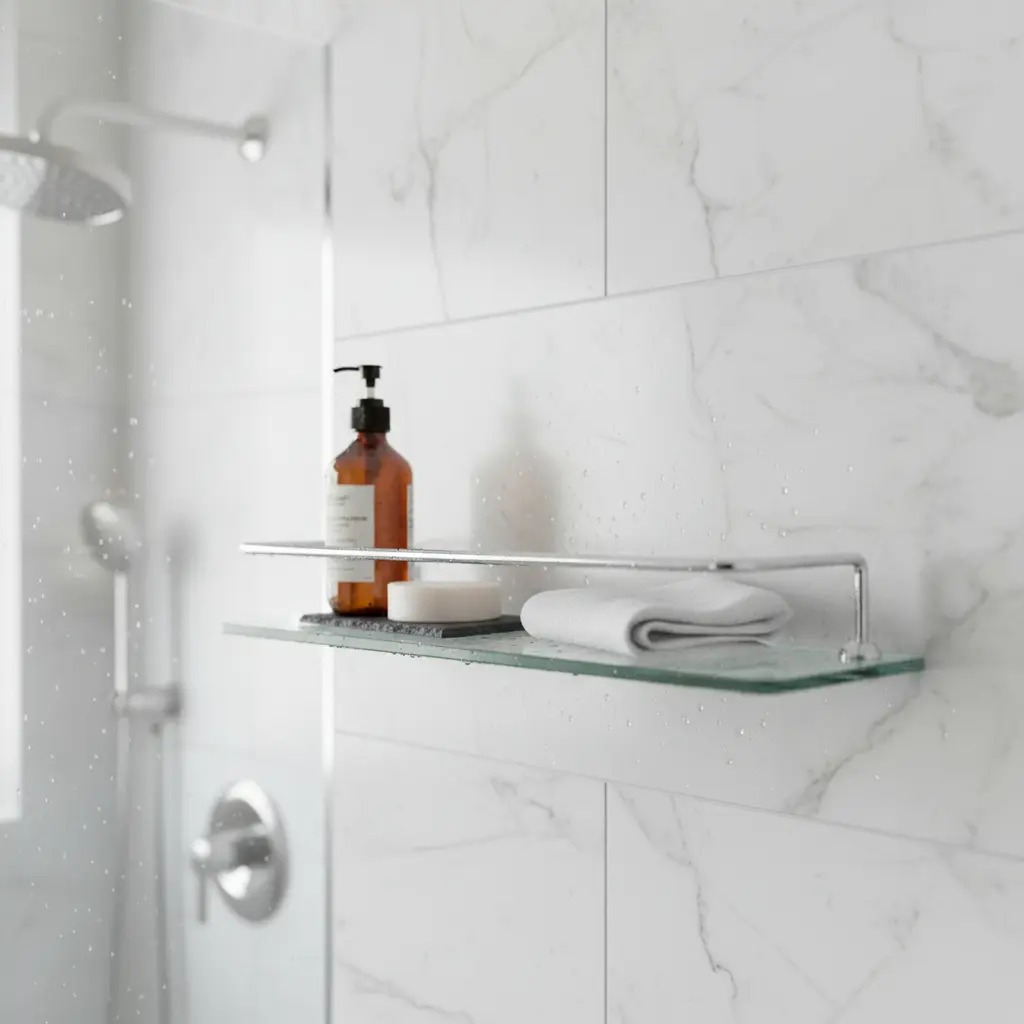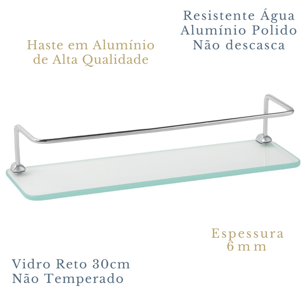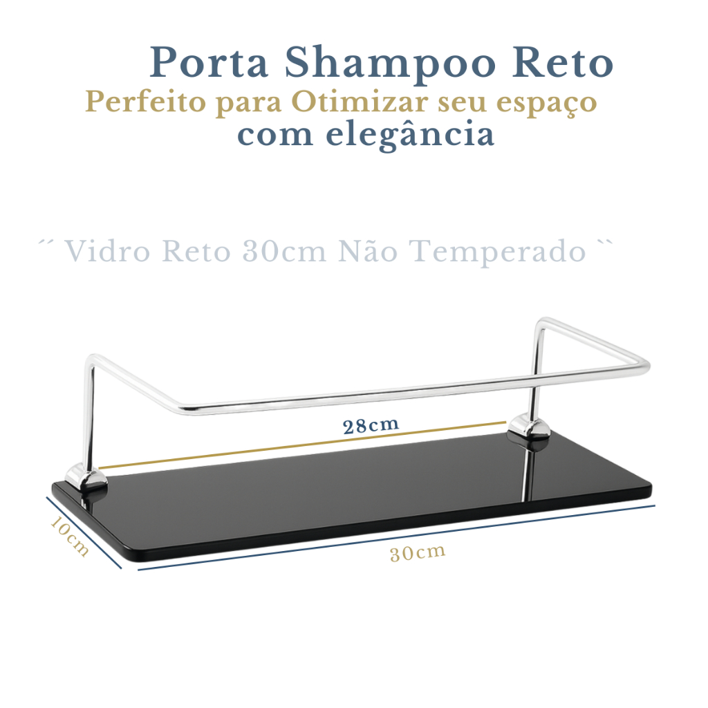 Prateleira para Banheiro Porta Shampoo Reto 6mm Vidro Incolor Fácil Instalação Parede Box 40 ou 30cm