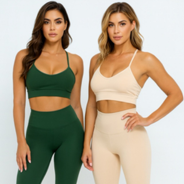 Kit 2 Conjuntos Top e Calça Legging Alcinha Costas Nadadora Fitness Treino Academia