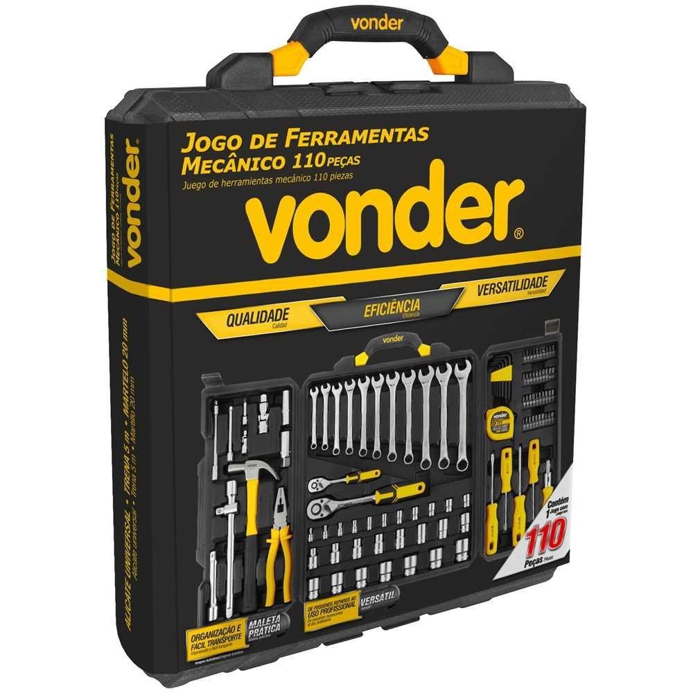 Jogo de Ferramentas Mecânico 110 Peças Completo com Martelo Alicate Trena Vonder