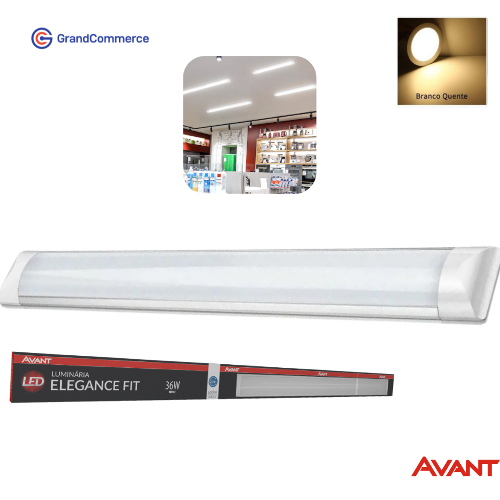 Luminária LED Tubular de Sobrepor 36W Bivolt 3000K Branco Quente - Linha Elegance Avant