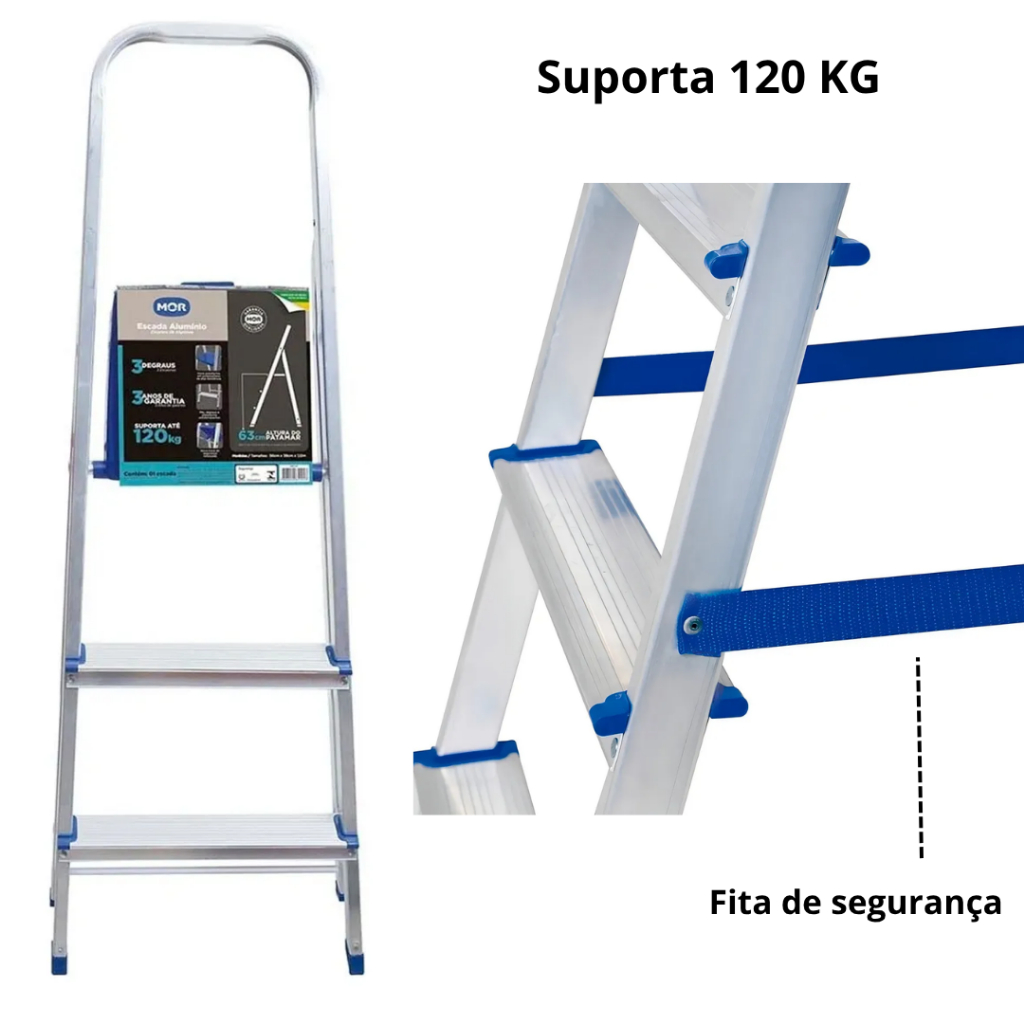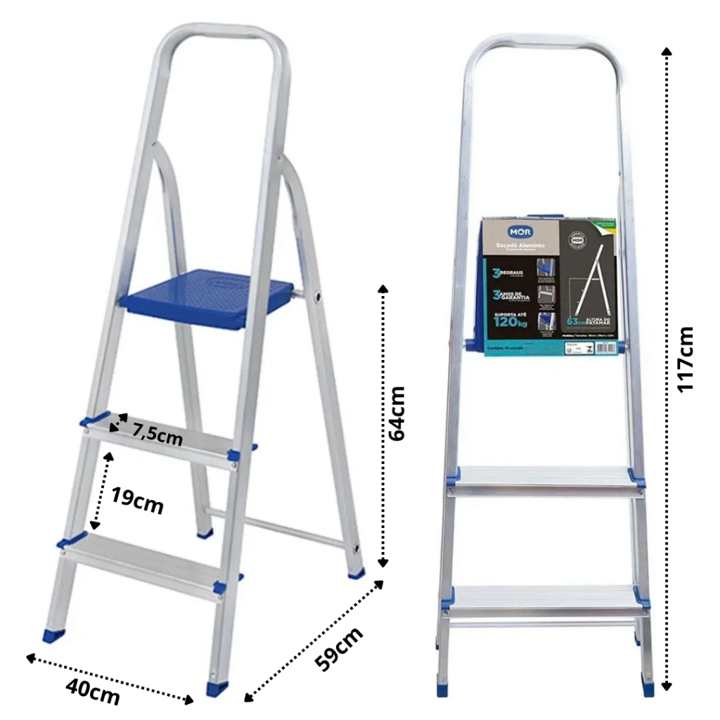 Escada 3 degraus alumínio doméstica leve e durável Mor