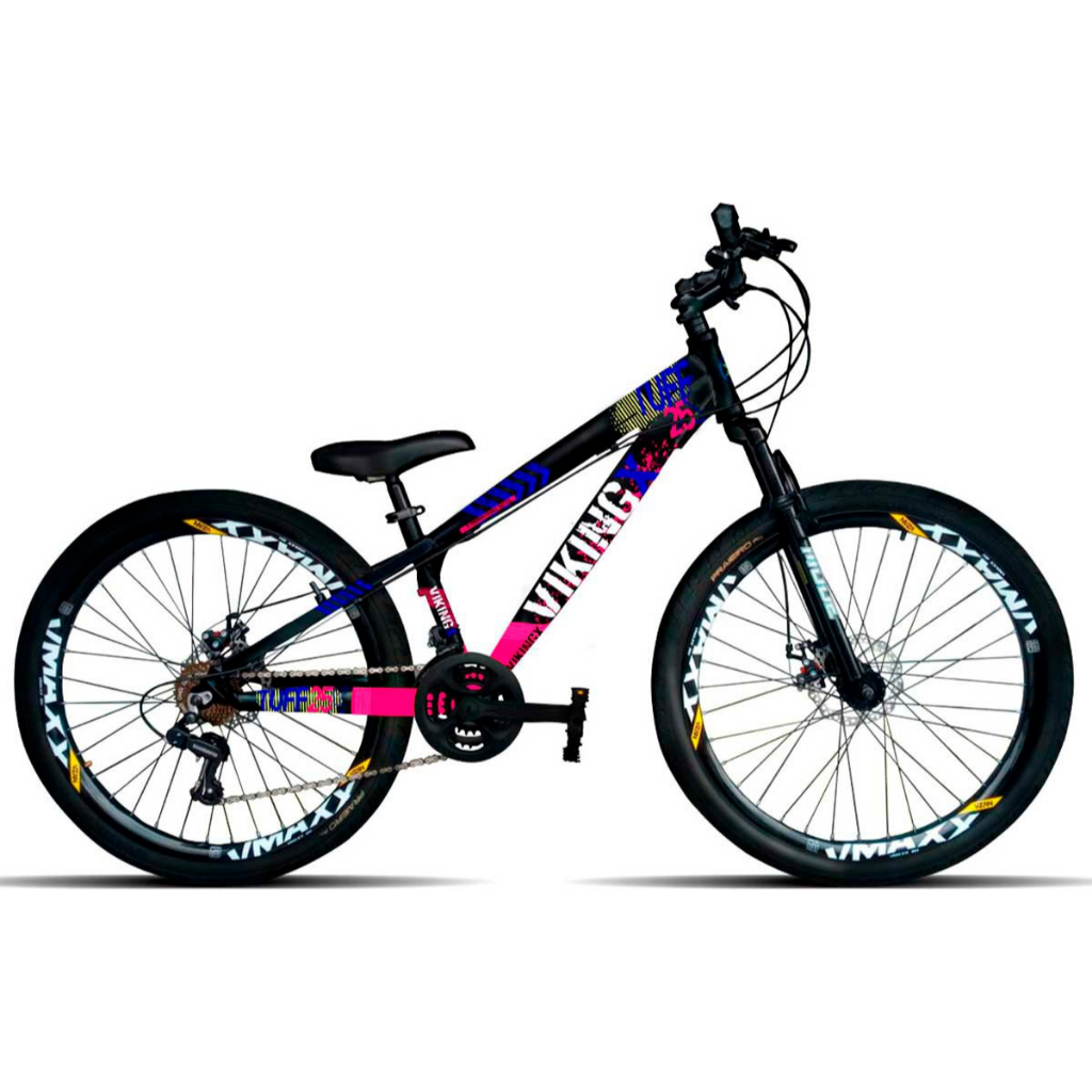Bike VikingX Tuff 25 Câmbios Shimano Aro 26 com Freios a Disco 21v Aros Vmaxx Bicicleta Suspensão Grau