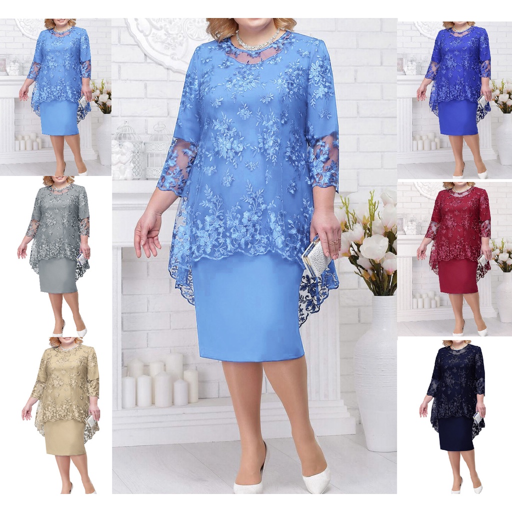 Vestido Duas Peças Feminino De Renda Bordada Plus Size/vestido de festa plus size