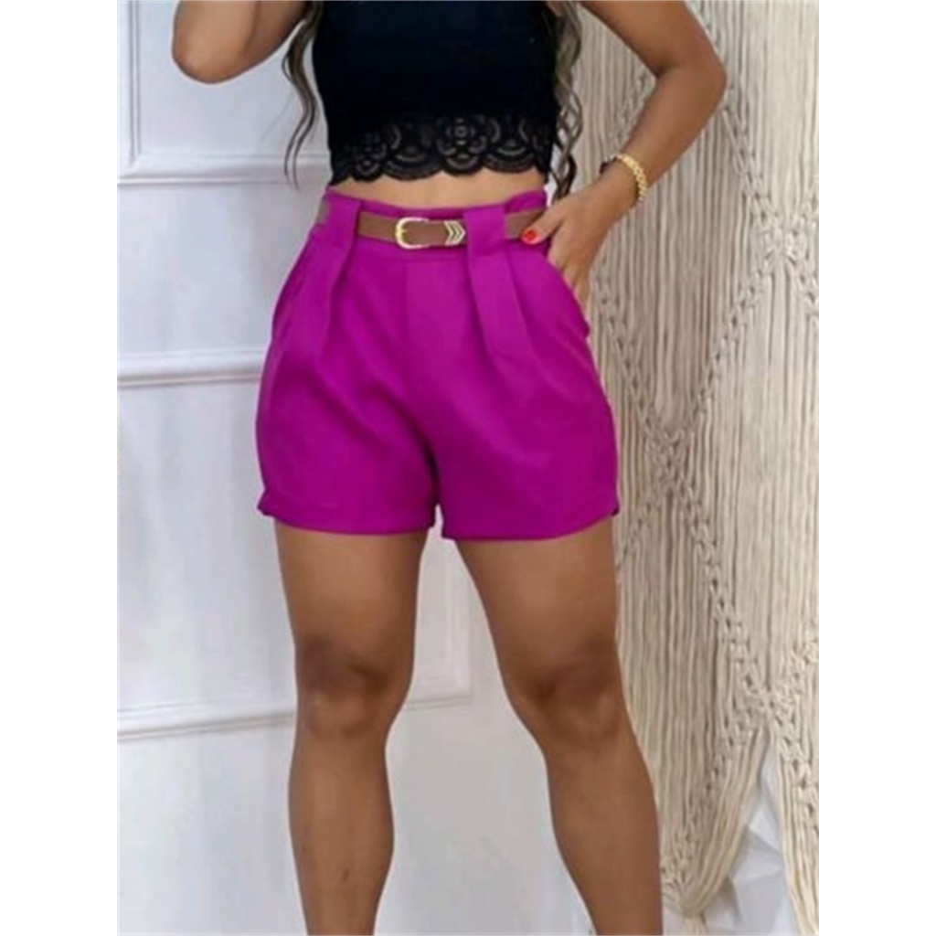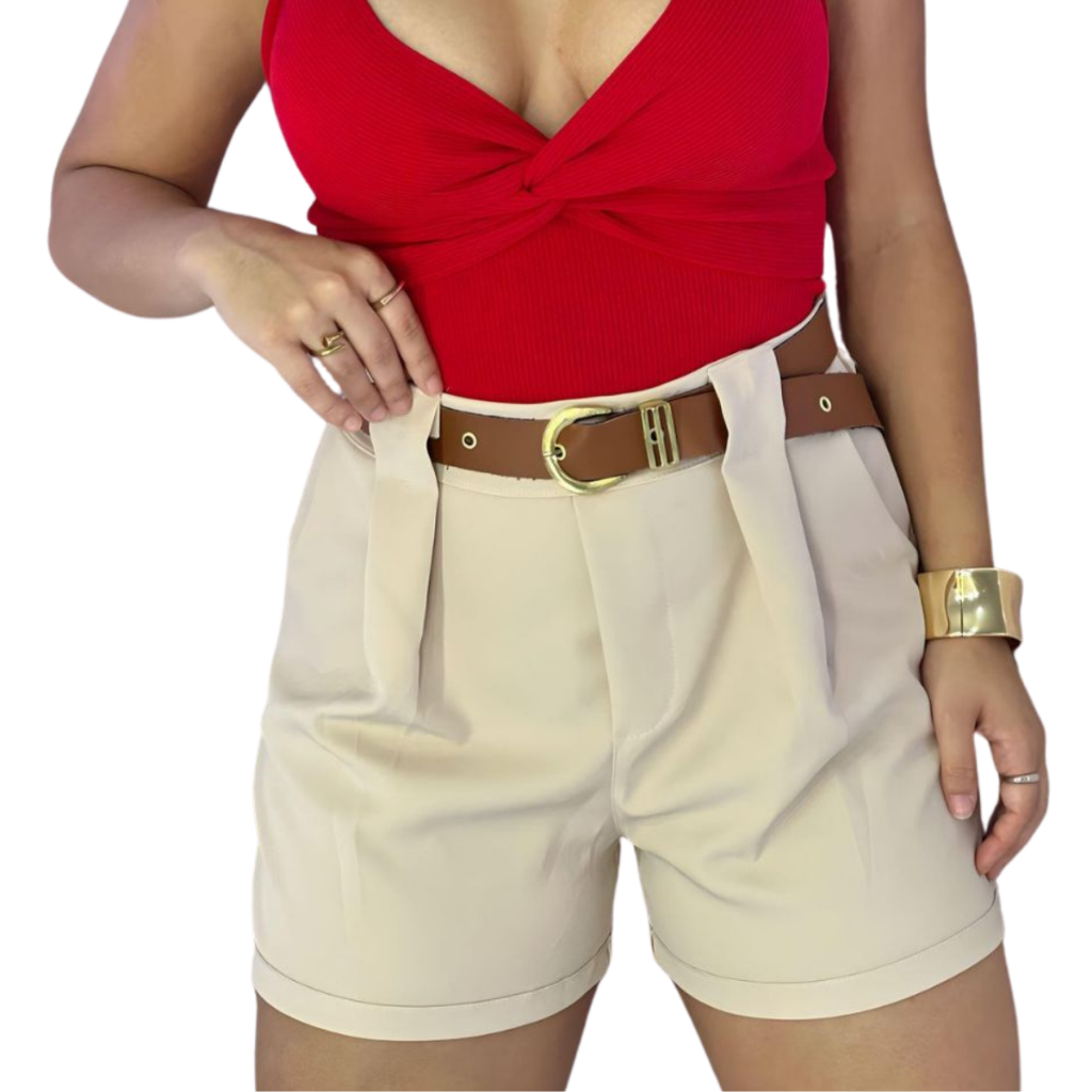 Kit 2 Short Alfaiataria Feminino Com Bolso, Cinto Cintura Alta PROMOÇÃO