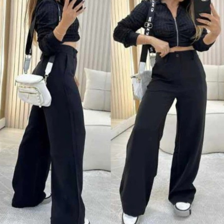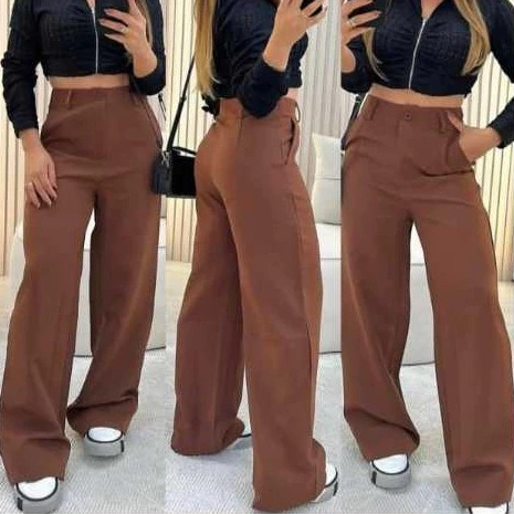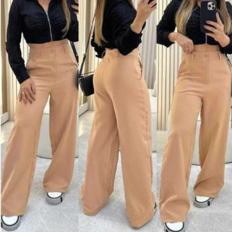 Calça Pantalona Alfaiataria Cintura Alta Premium Wide Luxo