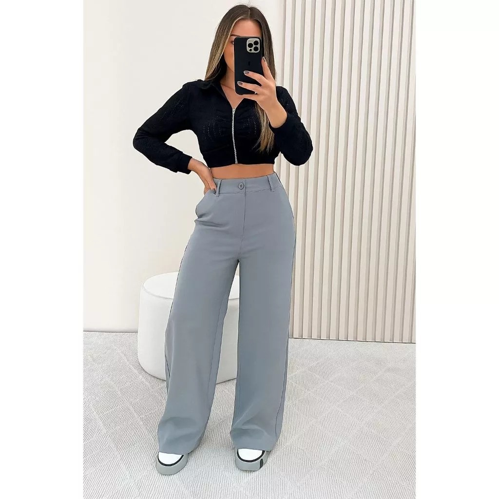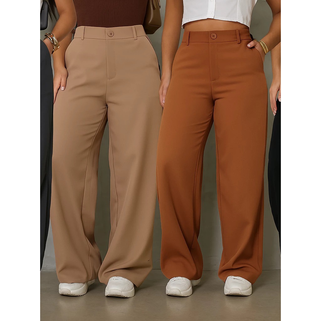 Kit 2 Calças Pantalona Alfaiataria Cintura Alta Com Bolso PROMOÇÃO