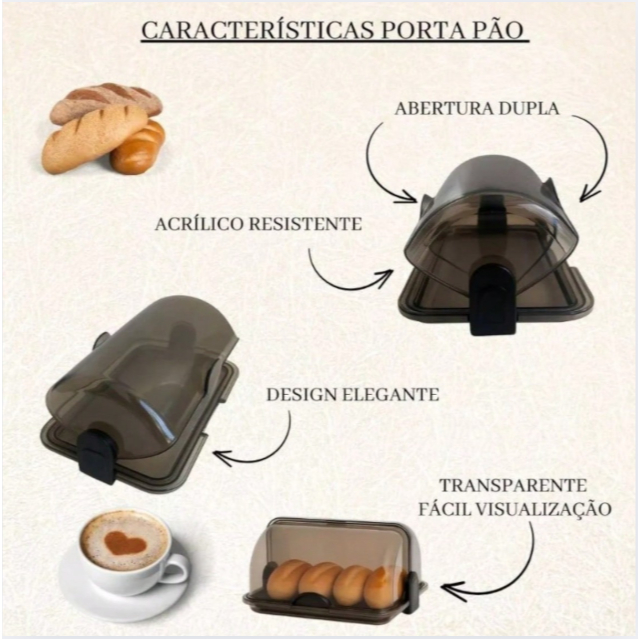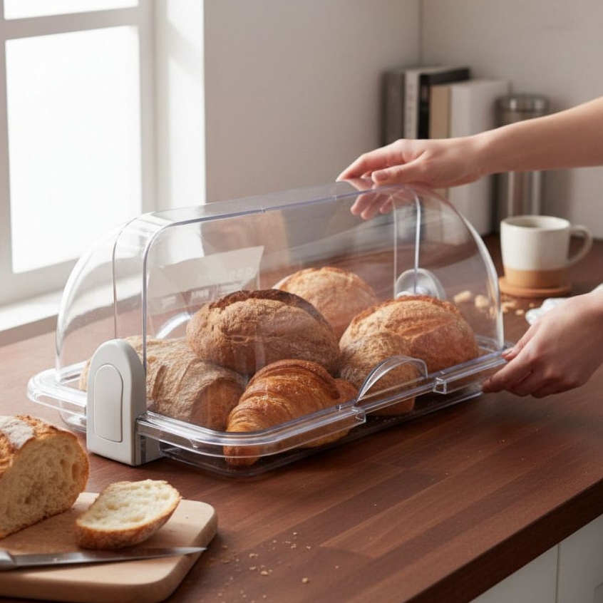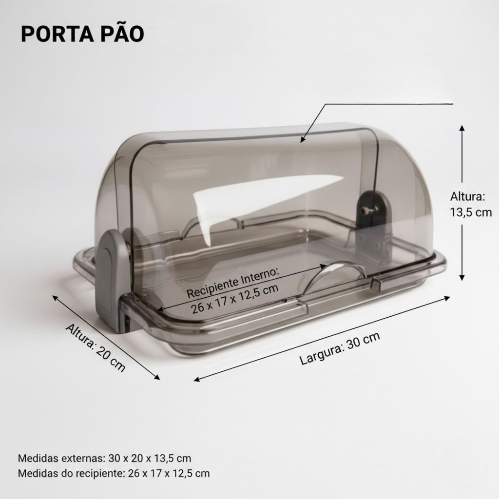 Porta Pão Cristal Armazenador Com Tampa Articulável Profissional Para Pães Bolos Mesa 30x20cm
